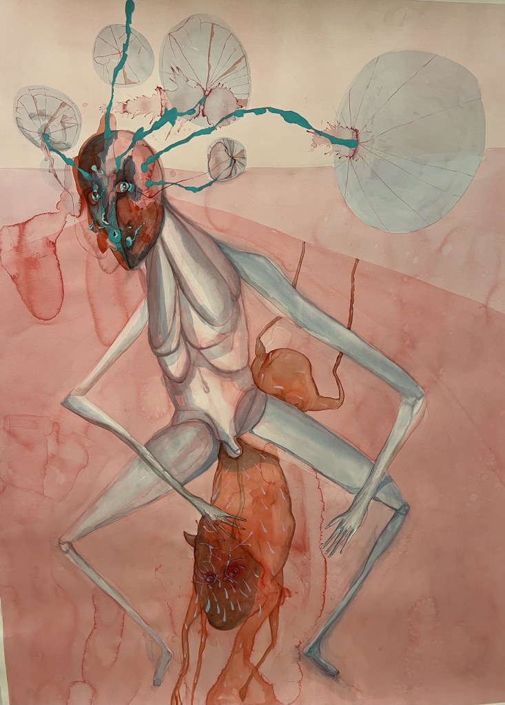 «Sin los elementos líquidos no sería posible la existencia. En el sexo, el poder y los fluidos forman una argamasa química y psicológica; se relacionan de manera compleja y natural. ¿Cómo relacionar el agua de una acuarela y el olor a semen que transita por la idea que la ha provocado? Penes, vísceras, vaginas, culos, hongos, fermentación, fecundación, penetración, contaminación y contagio, surgen cuando los charcos y los fluidos se mezclan libremente en las sombras». [Mateo Maté]