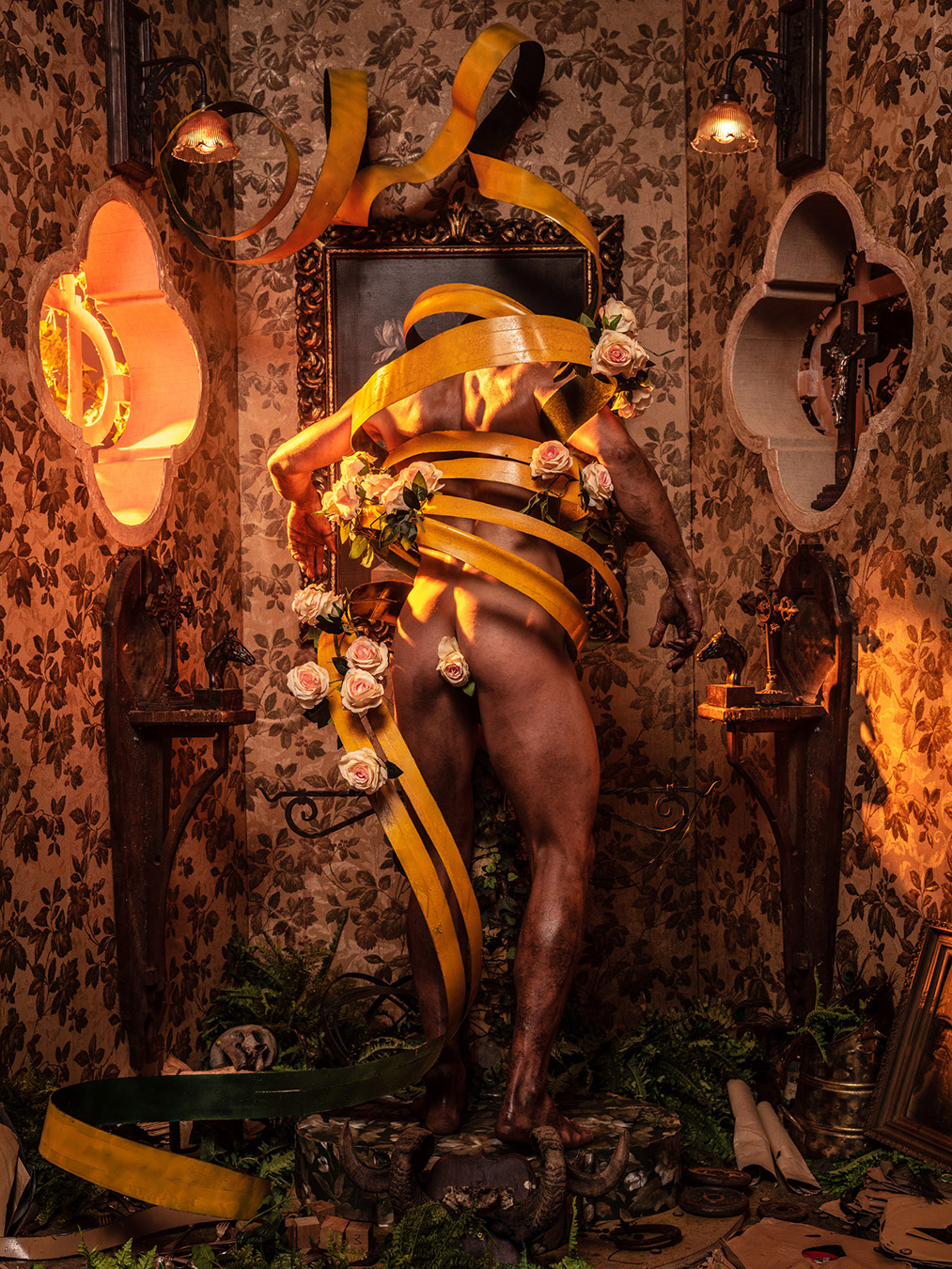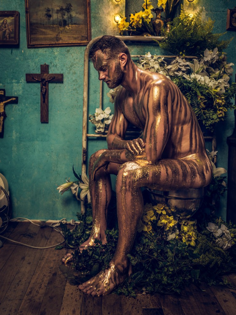Gui (Guilherme) Taccetti (São Paulo, Brazil, 1983) es un fotógrafo, creador de imágenes intensas – con colores fuertes y dramáticos -, en la que se tratan temas religiosos, barrocos y fantásticos con un trasfondo de sexo homoerótico. Como se aprecia en la web del artista, Taccetti aborda otros temas, incluso dentro del desnudo, pero creo que lo anteriormente expuesto refleja su obra más destacada.