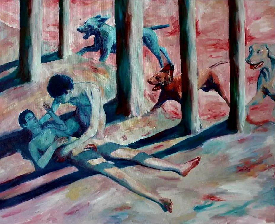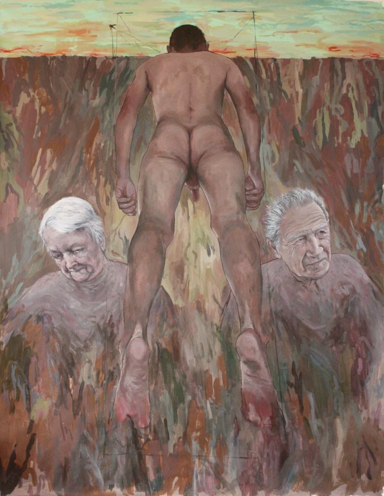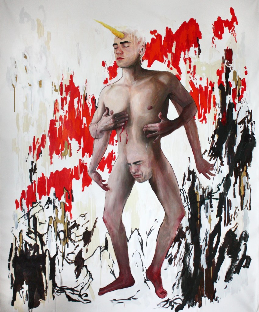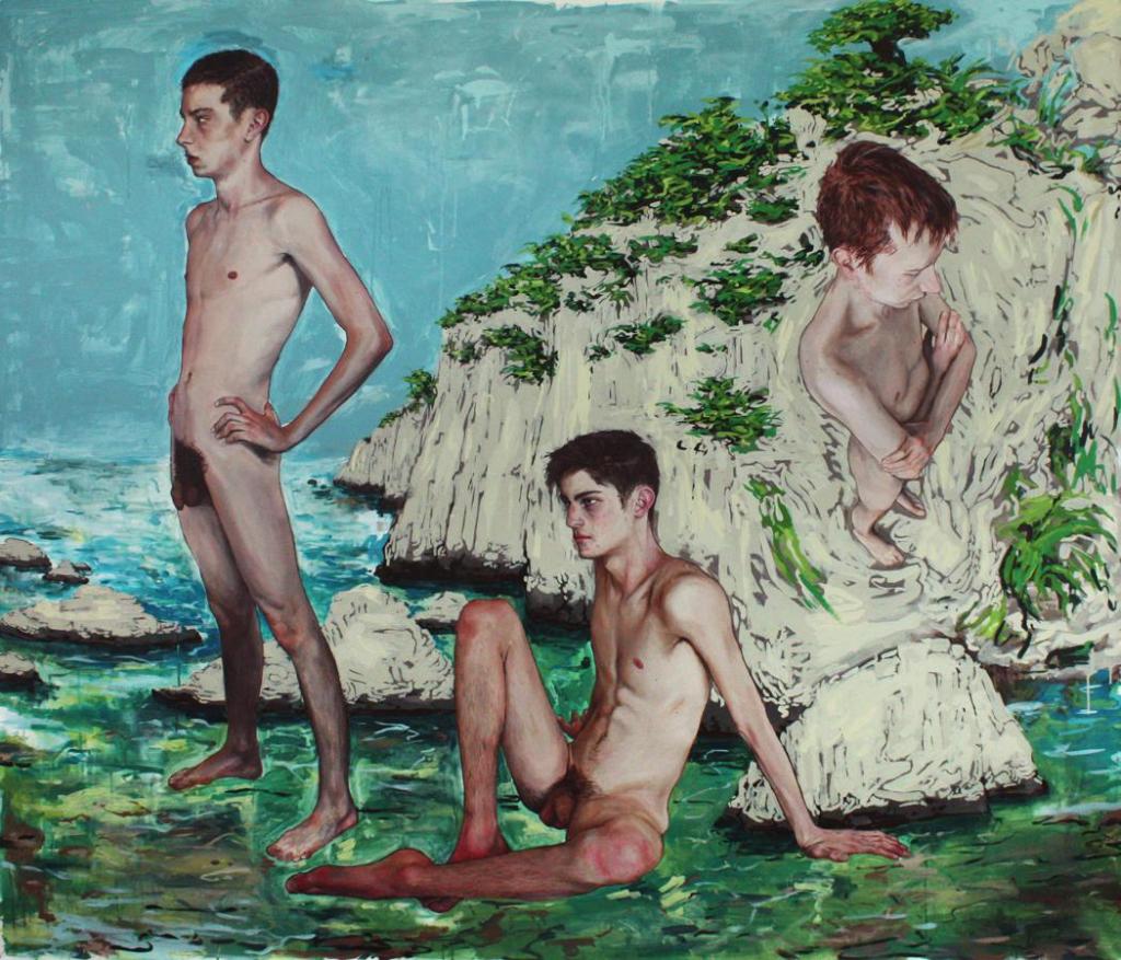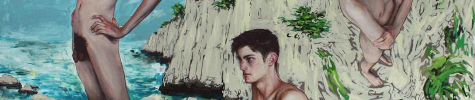 Alex Huthwohl (París, Francia, 1994) es un joven artista que, pese a su edad, es autor de una ingente cantidad de obra. Estudió Bellas Artes en Lyon y, posteriormente, en París donde se graduó en 2019. Se trata de una fecha tan reciente que resulta pronto para evaluar su posible evolución y la importancia que puede adquirir dentro del competitivo mundo del arte contemporáneo. Desde una perspectiva gay, centra su atención en la masculinidad o masculinidades, y en el diferente tratamiento que ha dado el arte a ésta respecto al de la femineidad. Unas interesantes declaraciones de este artista podemos verlas en un video de YouTube, que emplea como fondo la primera de las obras que les muestro: