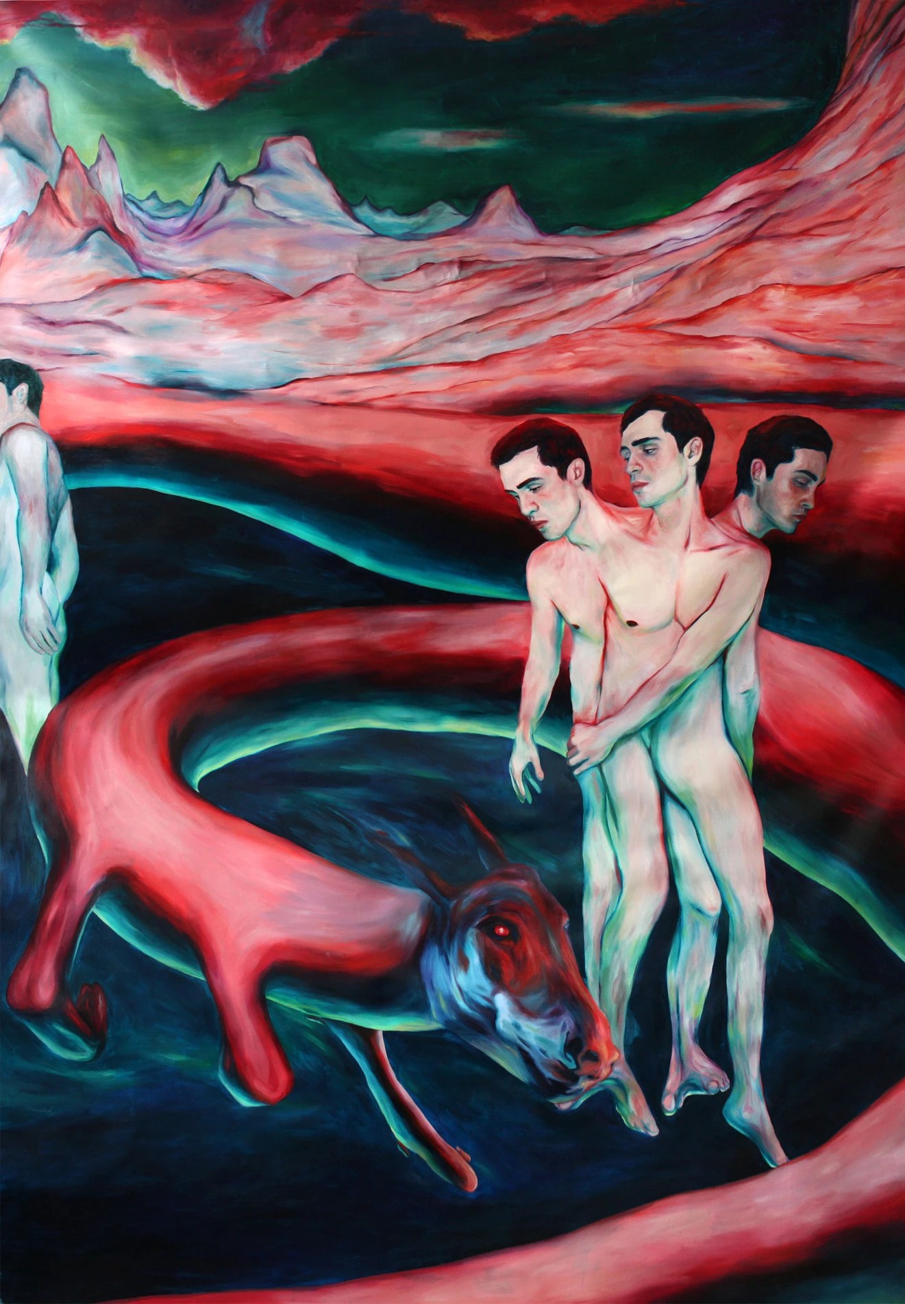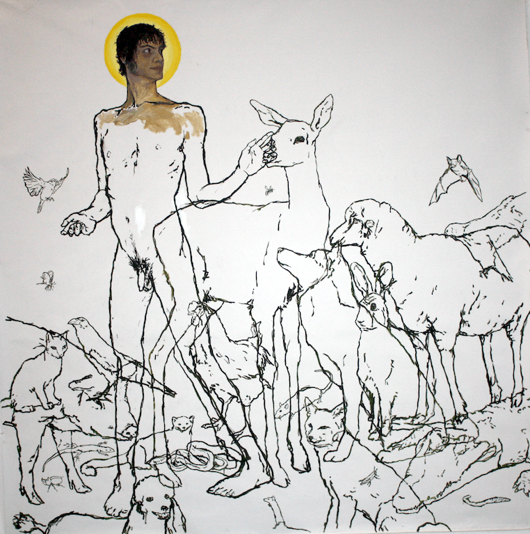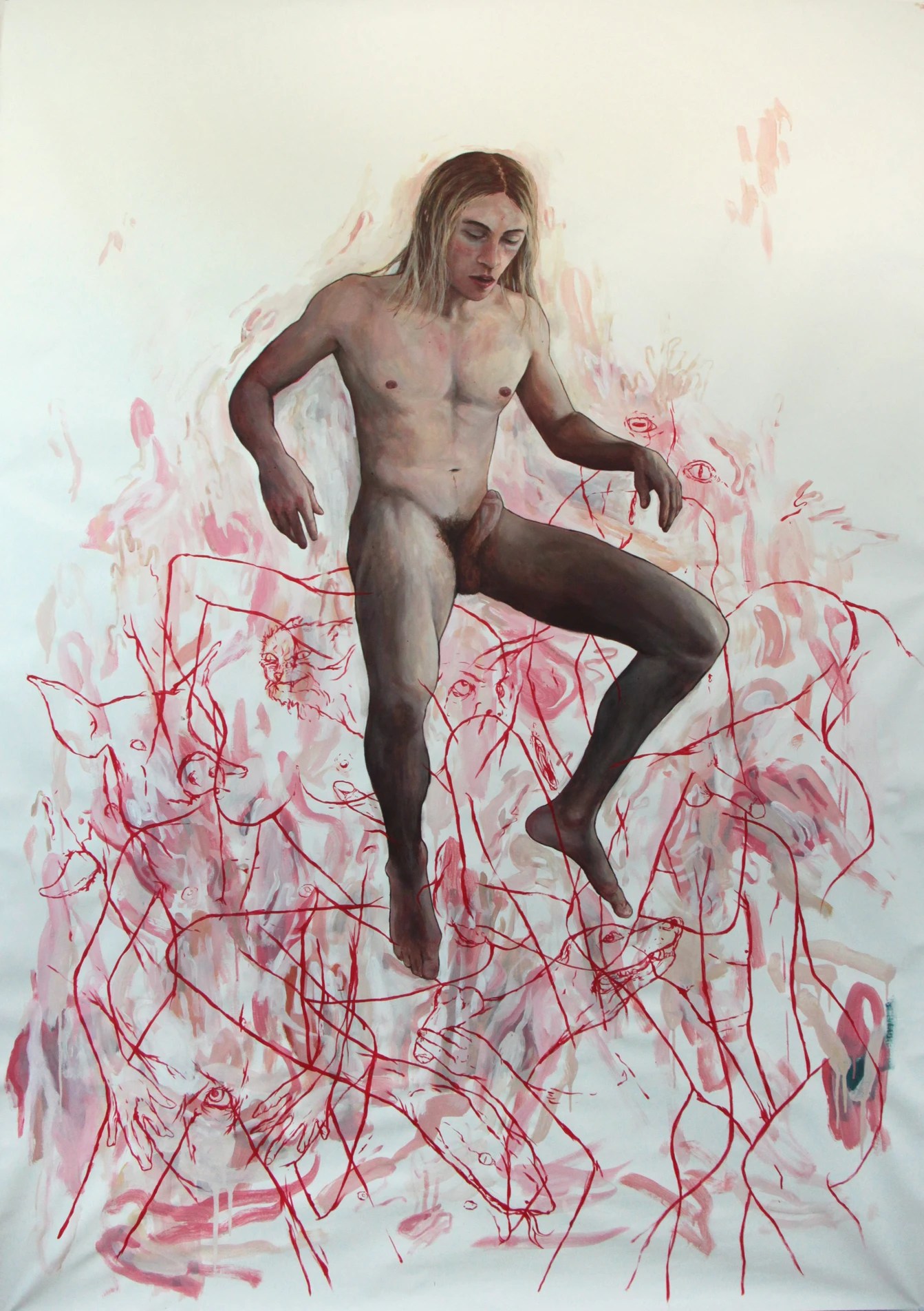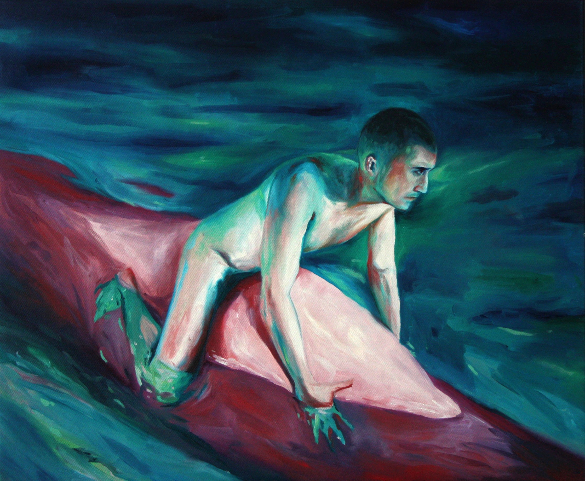 Alex Huthwohl (París, Francia, 1994) es un joven artista que, pese a su edad, es autor de una ingente cantidad de obra. Estudió Bellas Artes en Lyon y, posteriormente, en París donde se graduó en 2019. Se trata de una fecha tan reciente que resulta pronto para evaluar su posible evolución y la importancia que puede adquirir dentro del competitivo mundo del arte contemporáneo. Desde una perspectiva gay, centra su atención en la masculinidad o masculinidades, y en el diferente tratamiento que ha dado el arte a ésta respecto al de la femineidad. Unas interesantes declaraciones de este artista podemos verlas en un video de YouTube, que emplea como fondo la primera de las obras que les muestro: