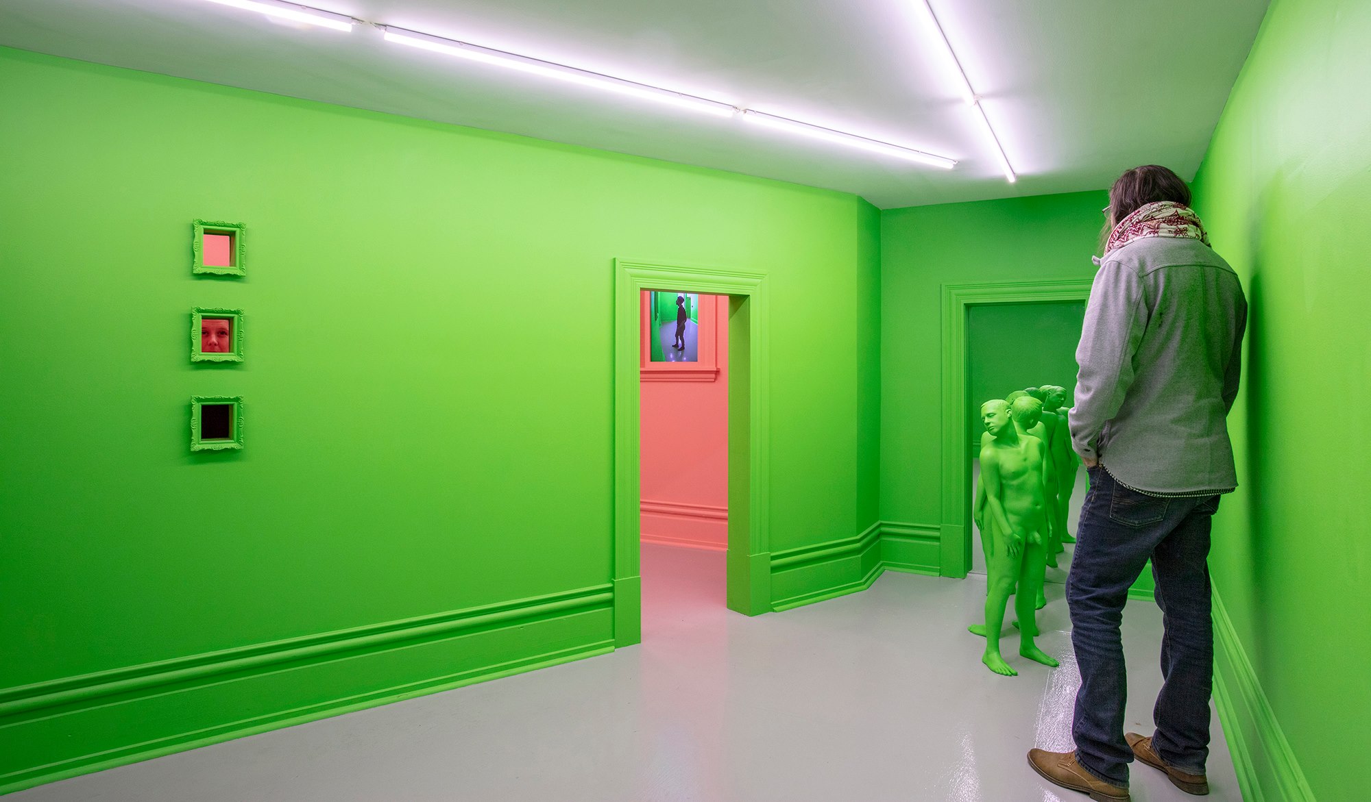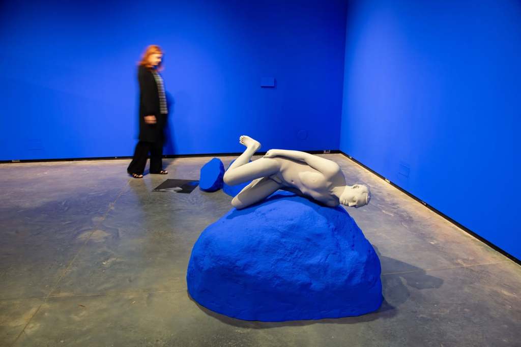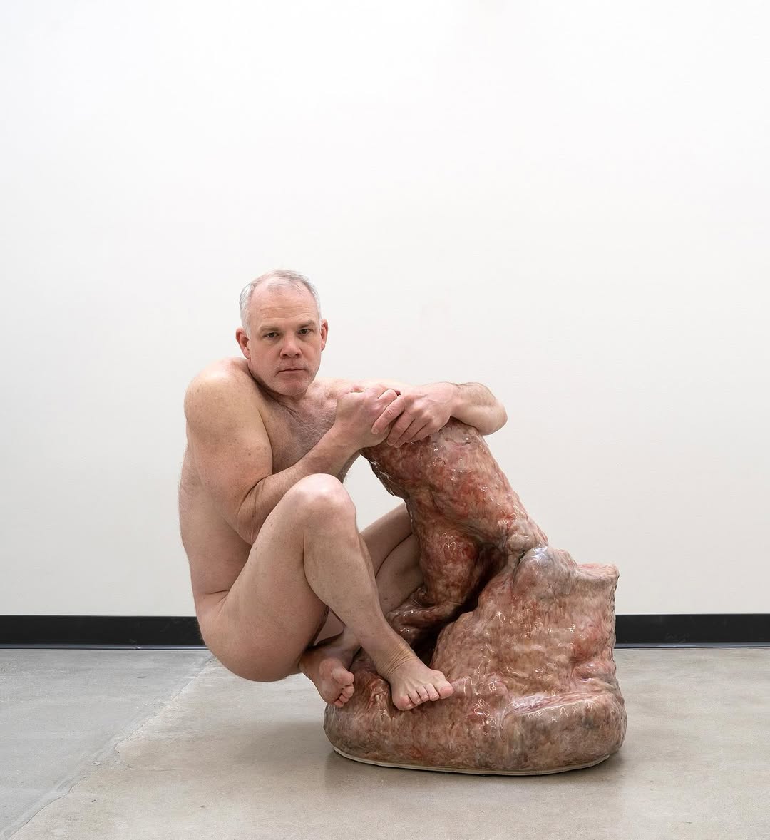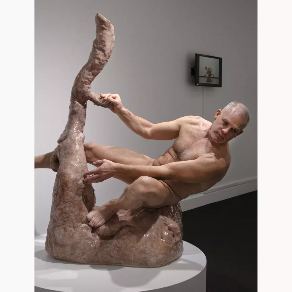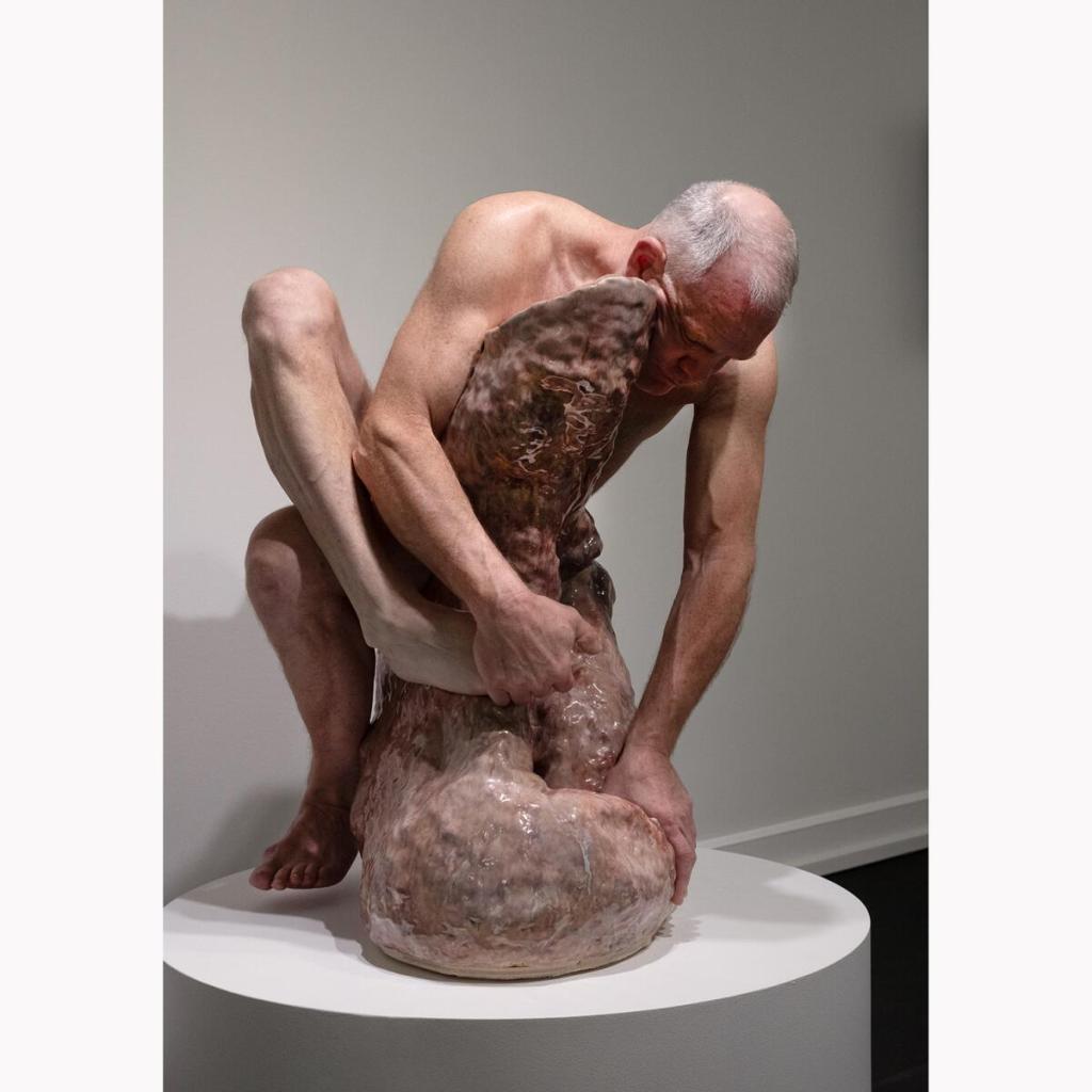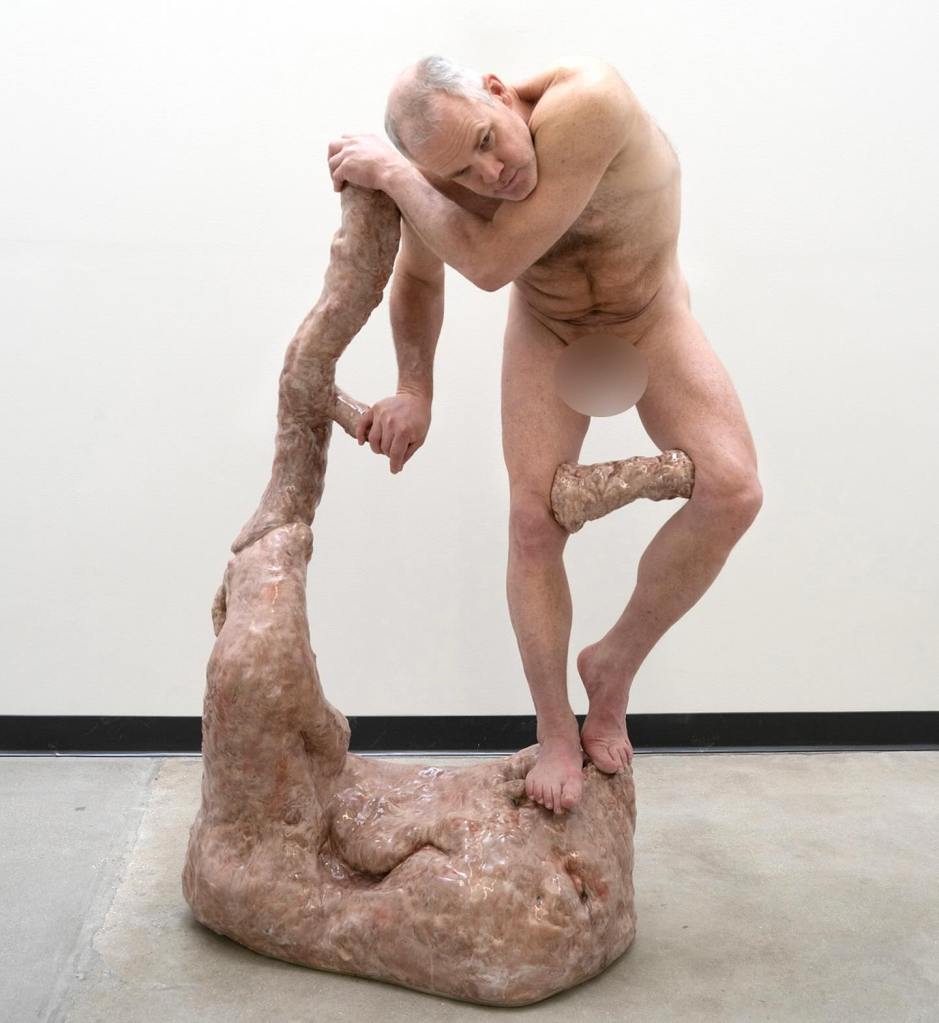 «El día de la inauguración de la exposición, un modelo desnudo de unos 40 años trepó a cada escultura de cerámica y adoptó una serie de poses: arrodillado, despatarrado, caminando en lo que West llama una pose de «pavoneo» (strut)».