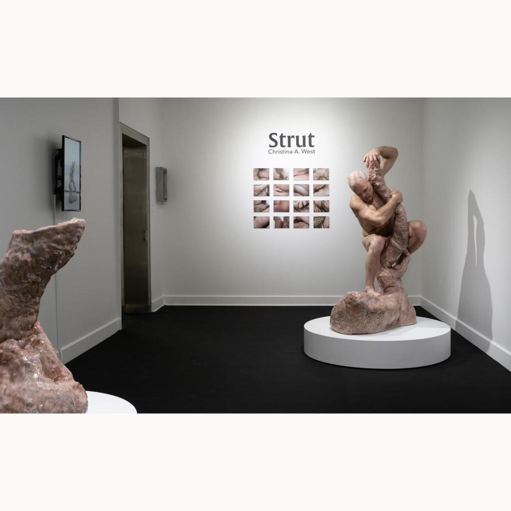 «West no quería crear más desnudos femeninos, tan omnipresentes en la historia del arte. En cambio, dada la tradición escultórica de hombres heroicos posando sobre un pedestal y como un giro hacia la mirada masculina, quería que “Strut” reexaminara los cuerpos masculinos y sus posiciones de poder».