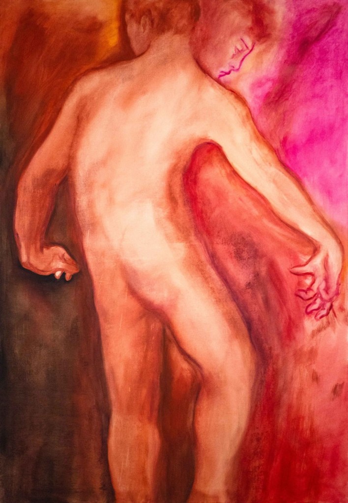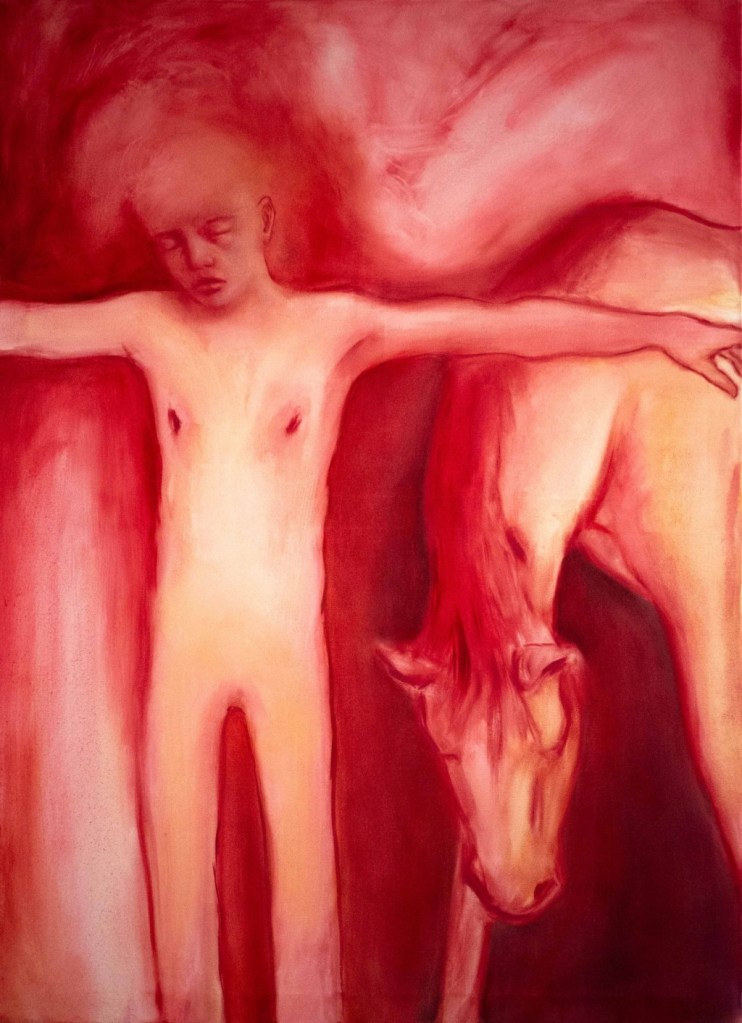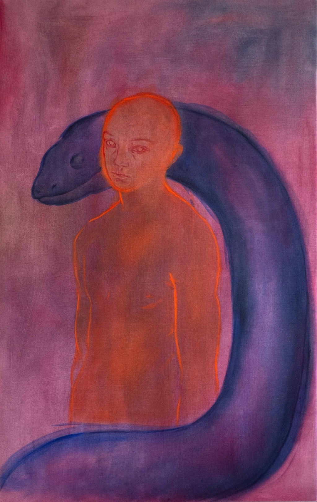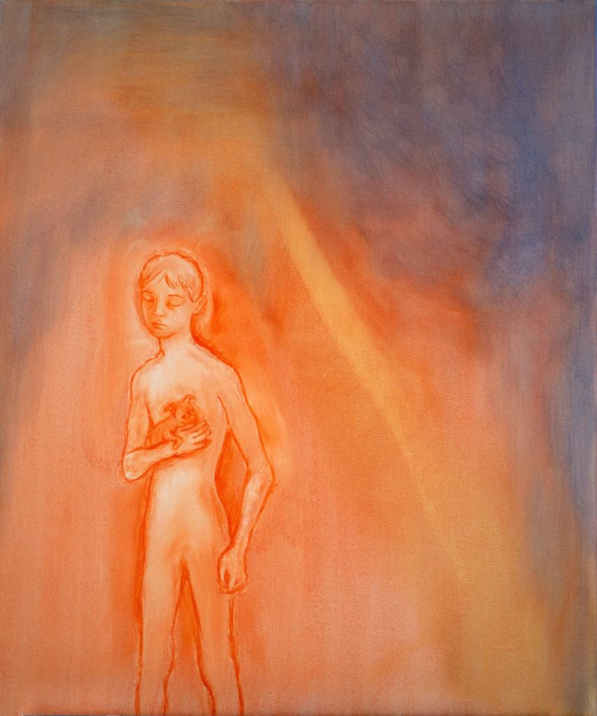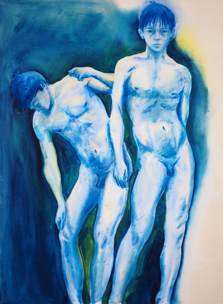 «Mis recuerdos de infancia constituyen el recurso más importante de mi trabajo. Son el lugar intacto en el que encuentro una perspectiva justa y exaltada. Mis pinturas están en el umbral, entre el descubrimiento apasionado del mundo y su desilusión. Las figuras jóvenes y melancólicas evolucionan en un tiempo suspendido. Reemplazan los íconos religiosos que poblaban el taller de mi madre y adoptan las mismas posturas. Me gusta mantenerlos enteramente en mi línea, mi línea, proyectándolos a la vida con poco. Busco captar la esencia de su cuerpo, manteniendo una sencillez formal que recuerda la tradición gráfica del cómic. El resto de la composición no es más que mundo, vibrante y fugaz. Evoca recuerdos, reminiscencias de una infancia lejana. Bosques y montañas son sobre todo superficies de color que invitan a la meditación y a las emociones crudas. Estos paisajes mentales son para mí un intento de reparación, en particular de nuestras relaciones entre los seres vivos.»