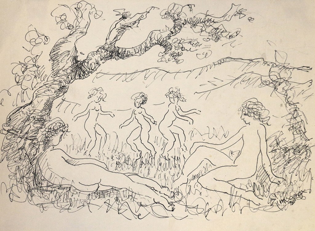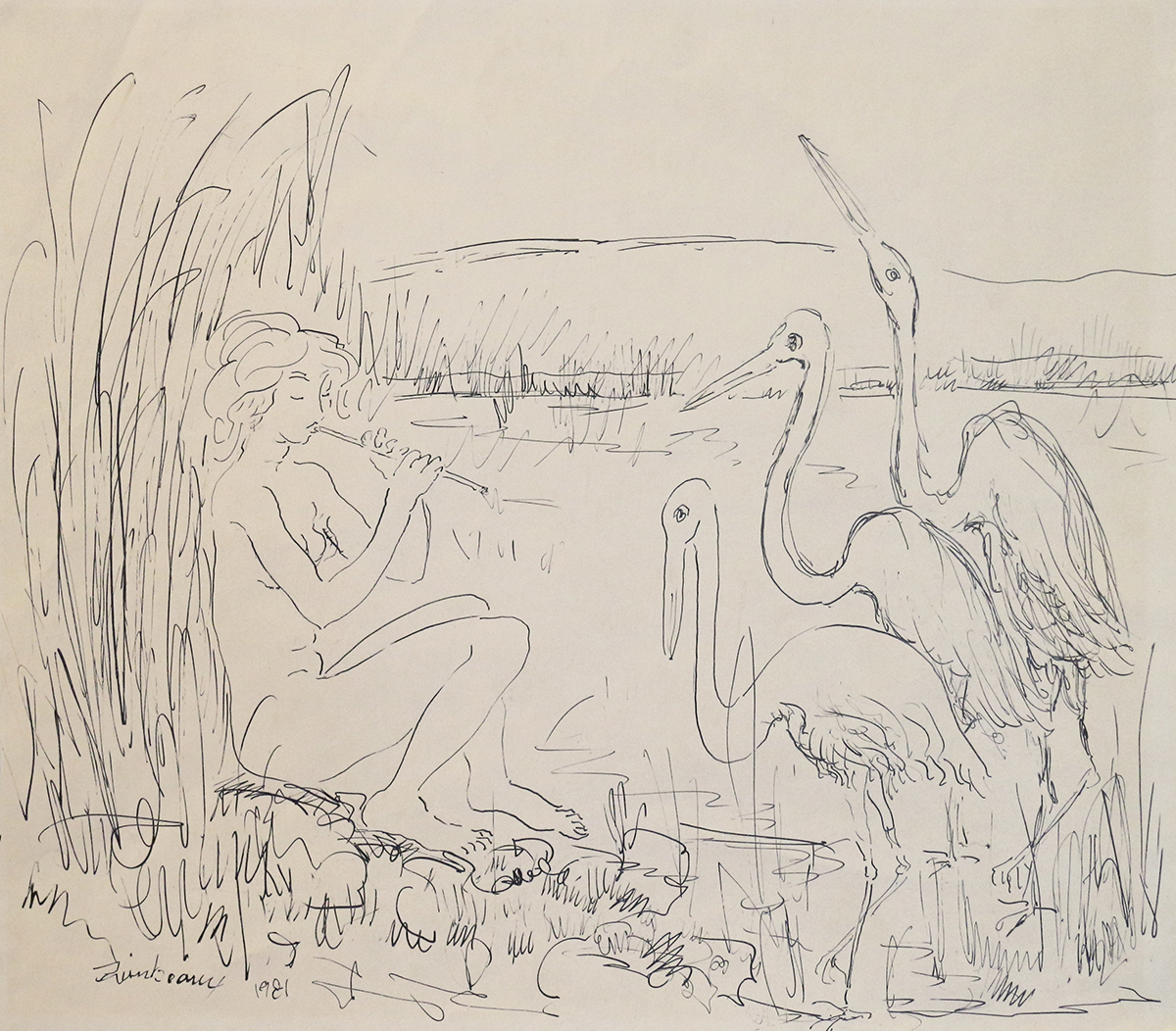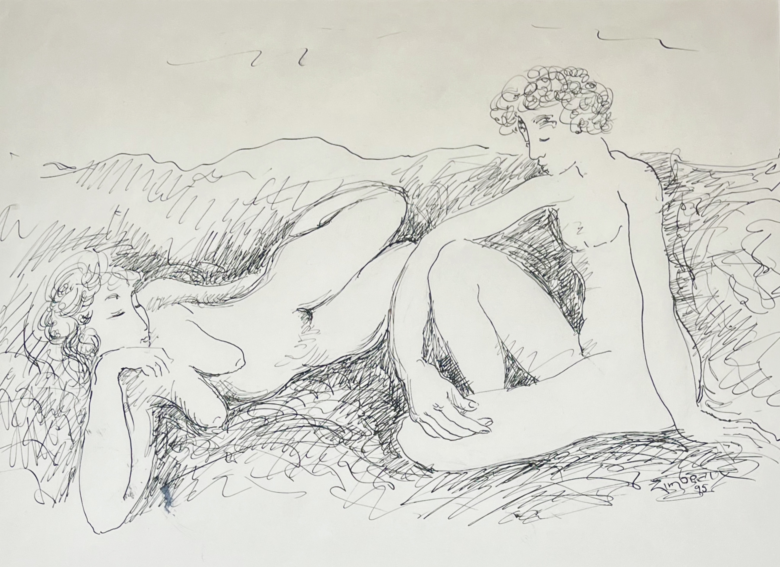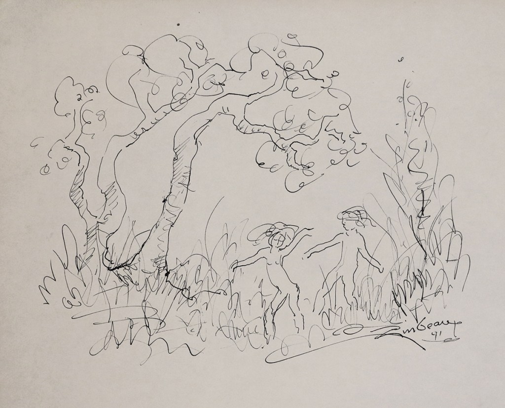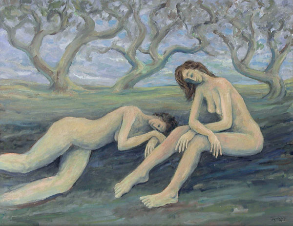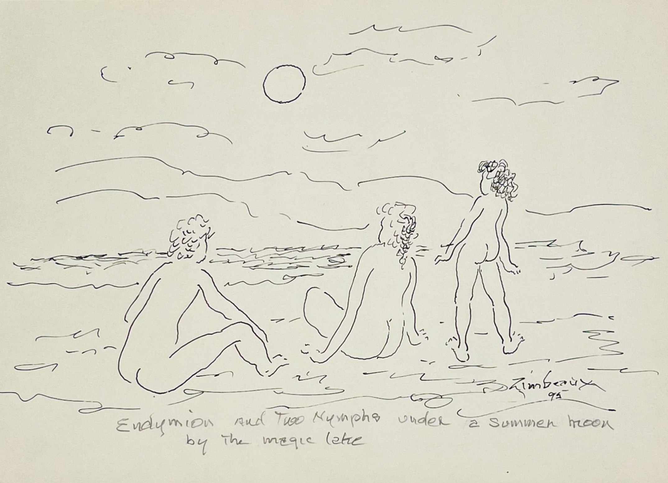 Francis H. Zimbeaux, conocido como Zim (París, Francia, 1913-2006) es un artista americano cuya familia, de origen francés, se trasladó a los Estados Unidos cuando él contaba con dos años de edad. Estudió en la Art Barn School y luego en la Universidad de Utah y fue una figura destacada de esta localidad durante 60 años, hasta su muerte. En su obra se destacan los paisajes en los que eventualmente se integran figuras mitológicas como las ninfas o Pan. Mezcla técnicas de dibujo y pintura sobre el papel, usa colores suaves, y realiza una cierta aproximación hacia las formas abstractas. Un buen análisis de su vida y obra lo podemos obtener de 15Bytes, la revista de arte de la Universidad de Utah.