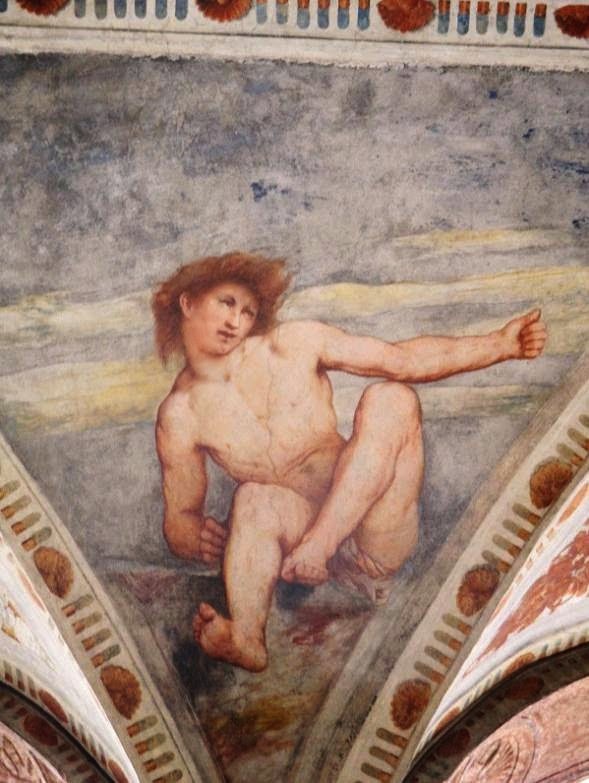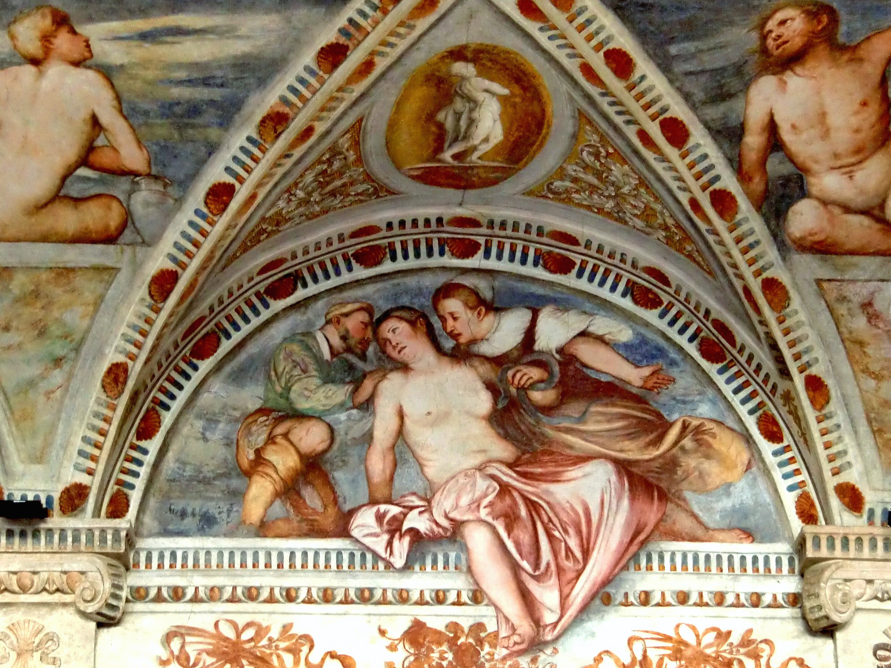 Girolamo di Romano, conocido como Romanino (Brescia, Italia, 1484-1566) fue un pintor renacentista cuyas pinturas, fundamentalmente religiosas y retratos, tiene un fuerte colorismo y muestran la influencia de Giorgione, Mantegna y Durero. Realizó numerosos frescos, siendo de destacar los llevados a cabo en la Loggia Grande del Palacio Magno del Castillo Buonconsiglio de Trento. A estos corresponden la mayoría de las obras aquí mostradas.