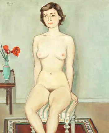 Einar Jolin (Estocolmo, Suecia, 1880-1976) fue un pintor que, inspirado por el estilo de Matisse, creó una obra expresionista que, contrariamente a la corriente alemana, apostaba por la armonía y belleza de sus composiciones: paisajes, bodegones y retratos. En sus retratos se aprecia un toque ingenuo que muestra la influencia ejercida por algunos artistas del movimiento naif, especialmente por Séraphine Louis.