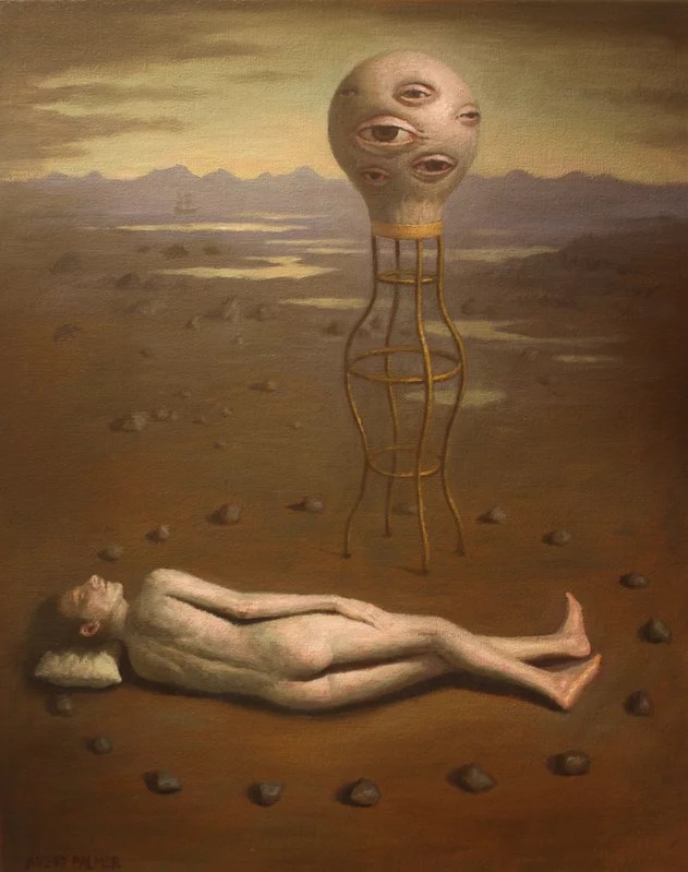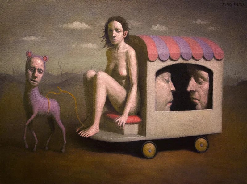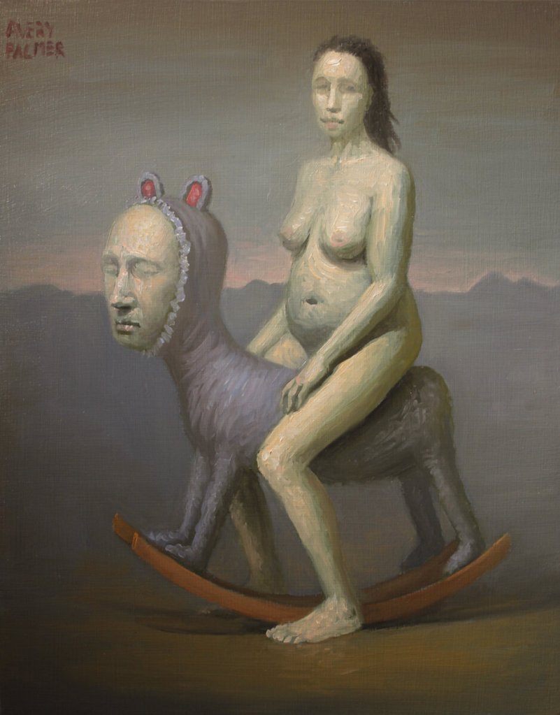 Avery Palmer (Arcata, California, USA, 1983) es un pintor, dibujante y ceramista estadounidense creador de una obra extraña, de características surrealistas. Entresaco algunos comentarios del artista sobre su obra que podemos leer en su página o web o, en español, en Artsper: