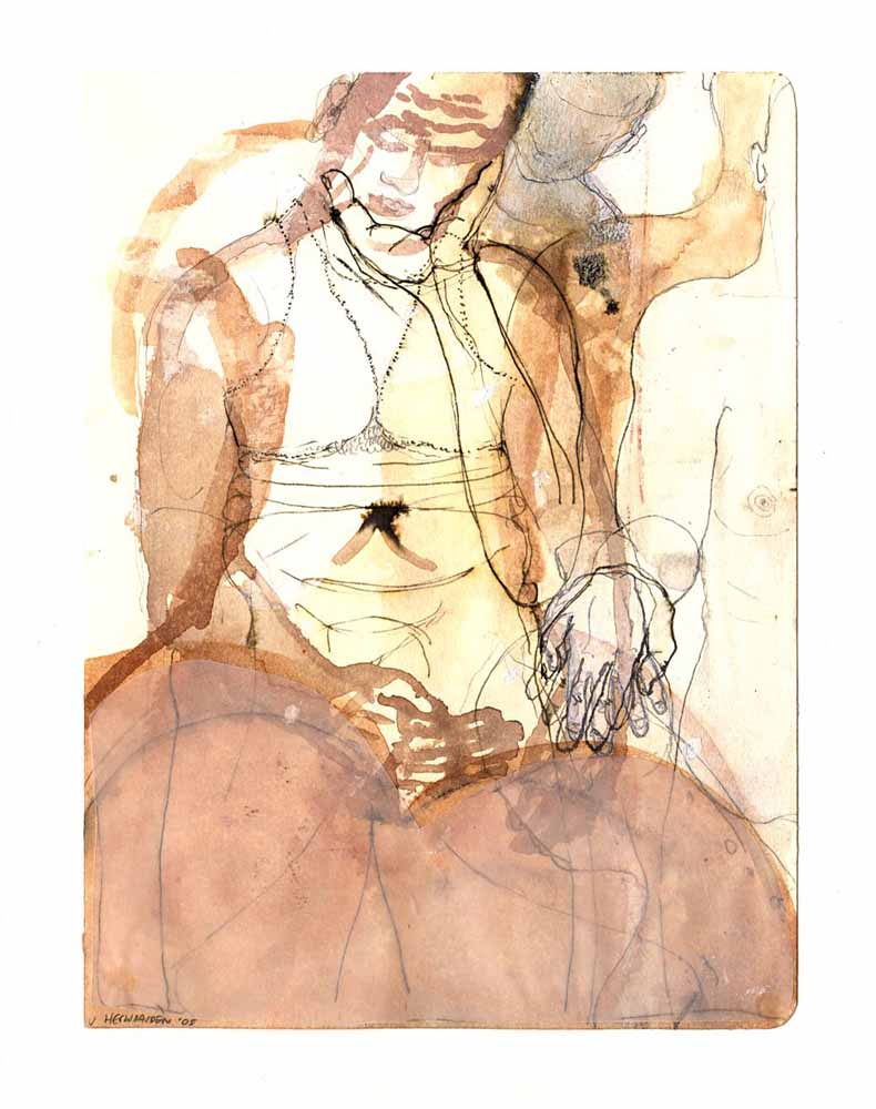 Caren van Herwaarden (Paises Bajos, 1961) explora el cuerpo humano con un alto grado de informalismo. Dibujos, collages y especialmente acuarelas que nos muestran un mundo sugerido y parcialmente velado. Su obra acuarelística me recuerda mucho a la de Miquel Barceló y a la de Georgia O’Keeffe.