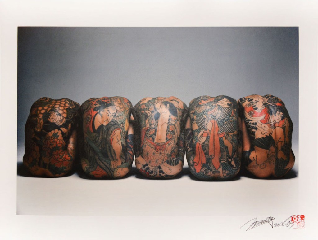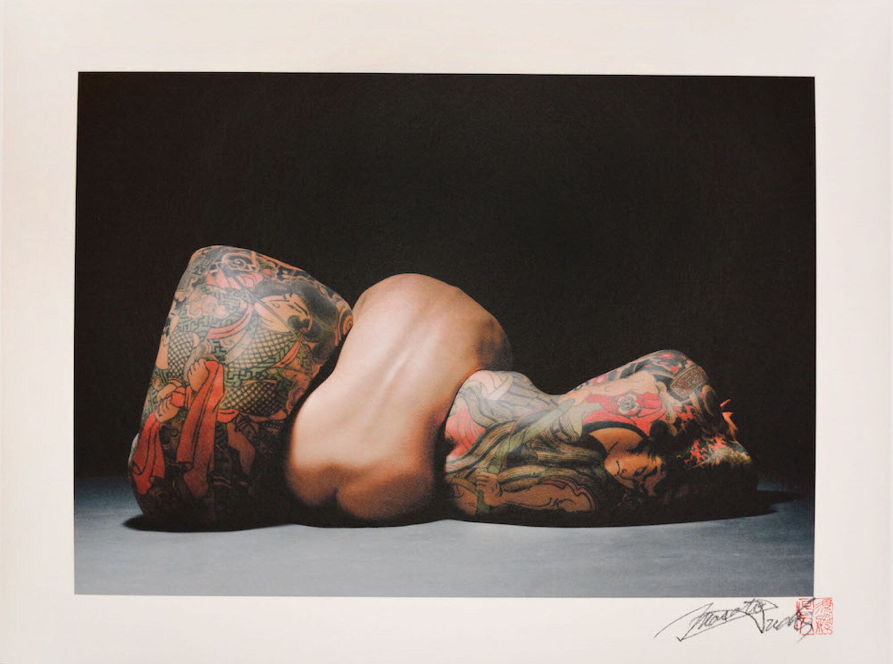 La obra de Masato Sudo (Japón, 1955) muestra la fascinación por el tatuaje japonés que utiliza el método «tebori», para el que se emplea un instrumento alargado de bambú o metal acabado en una aguja. Sus modelos no son unos simples figurantes. Son personas tatuadas a las que ha podido contactar, generalmente, a través de sus tatuadores. Sus cuerpos se nos muestran como un lienzo sin ningún interés sexual. En 1985 publicó un libro, con una recopilación de estas obras, con el título RANSHO, que ha tenido una gran aceptación.