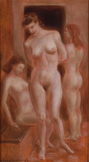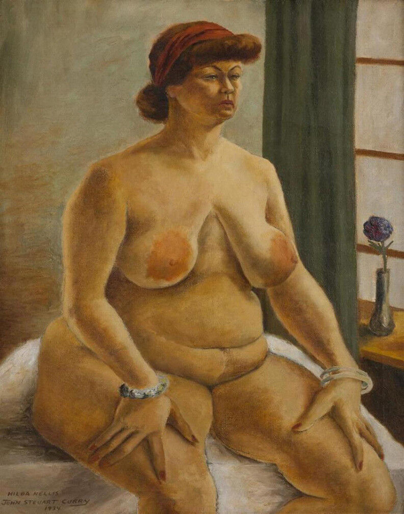 John Steuart Curry (Dunavant, Kansas, USA, 1897-1942) fue un pintor realista y uno de los principales exponentes – Thomas Hart Benson y Grant Wood – del regionalismo estadounidense de principios del siglo XX. En su obra, Curry «mostraba en sus obras familias sobreviviendo a desastres naturales como una metáfora de los efectos de la Gran Depresión en el Medio Oeste» (Wikipedia). En 1926 vivió un año de estudios en París y los conocimientos adquiridos sobre arte europeo, especialmente francés e italiano, se ponen de manifiesto en sus desnudos, en cualquier caso escasos, frente a su amplia producción de escenas que muestran la vida popular en Kansas.