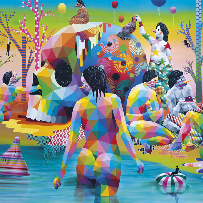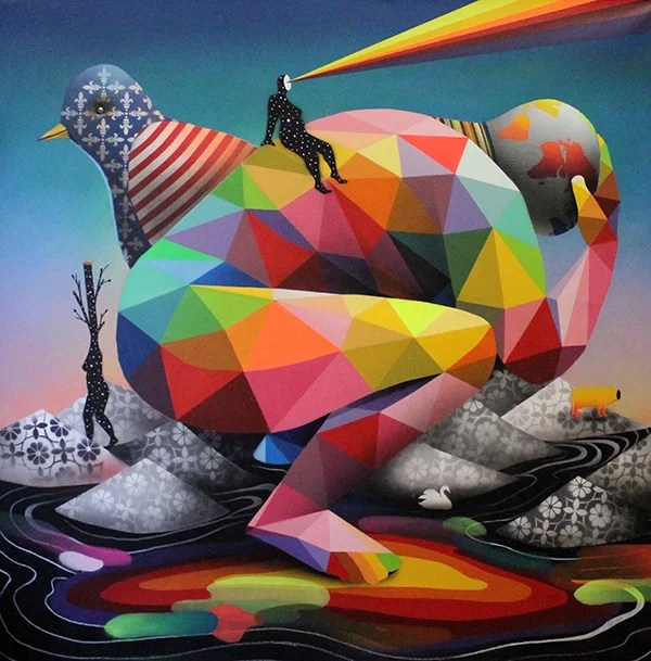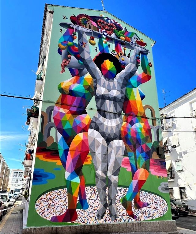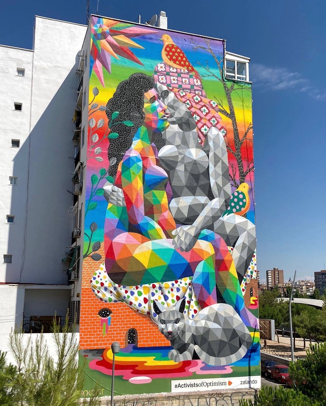Okuda u Okuda San Miguel es el nombre artístico de Óscar San Miguel Erice (Santander, España, 1980) un pintor, escultor y diseñador conocido fundamentalmente por sus creaciones relacionadas con el arte urbano o street art. A su estilo se le etiqueta con frecuencia como «surrealismo pop» o «arte psicodélico», y sus obras suelen tener carácter fuertemente fragmentado, con patrones regulares, intensos colores yuxtapuestos y una fuerte intencionalidad volumétrica. Se habla de una pretensión social que nos muestra la soledad del individuo, de intenciones anticapitalistas y de elementos simbólicos incorporados en la producción, pero no hay un acuerdo general sobre el significado o la trascendencia de la misma. El artista, considerado como el Banksy español, comenta en una amplia entrevista para la Tribuna Complutense: