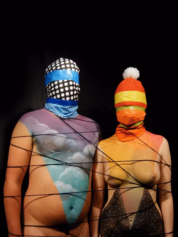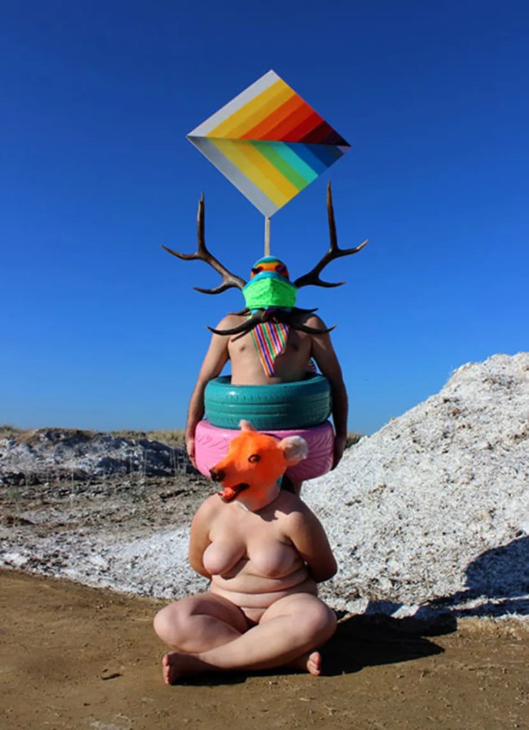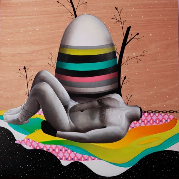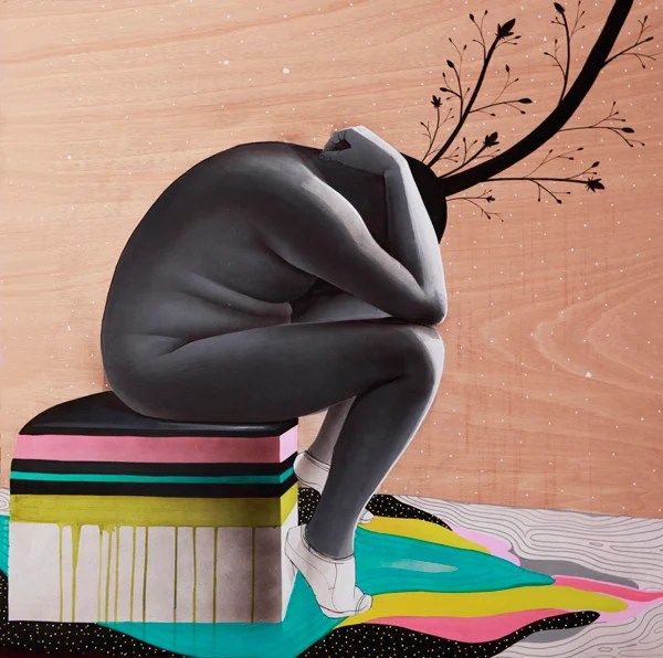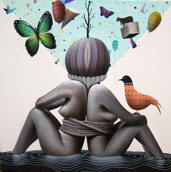 «…los símbolos de mi trabajo, que hemos decidido que son once, por ser mi número mágico. Más allá de eso, reconozco que hay unos cuantos que se suelen repetir en las obras, como los personajes protagonistas que suelen ser mujeres gruesas, recordando un poco la pintura renacentista, las pinturas clásicas, un poco en contra de los cánones estipulados ahora. Diría que todos mis elementos hablan de temas existenciales y universales, como el existencialismo, el sentido de la vida, la libertad, la diversidad, pero, sobre todo, y por encima de todo, mis cuadros hablan de la diversidad y la igualdad».
