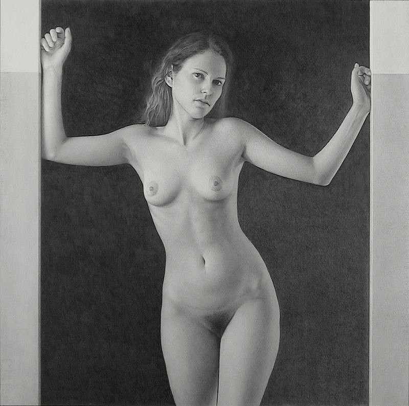 Aunque nacido en los Estados Unidos, Richard Thomas Davis (Middletown, Nueva York, USA, 1947) es un artista canadiense, que desarrolla su actividad en Nova Scotia, y creador de obras de temática muy diferente con un impresionante estilo realista. No se aprecia en este pintor esa visión artificiosa y algo exagerada de la realidad al modo de los hiperrealistas. Su obra es mucho más próxima a la visión ocular y cuesta distinguirla de la reproducción fotográfica. Así, he tenido que comprobar que los dos primeros desnudos que les muestro no son fotografías en blanco y negro sino dibujos realizados con lápiz:
