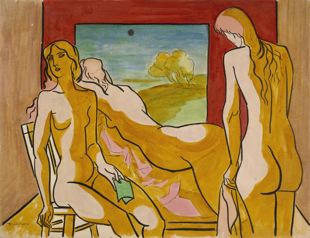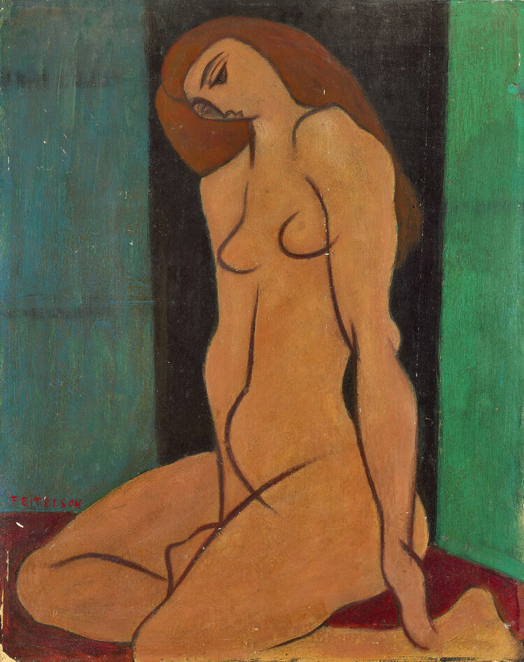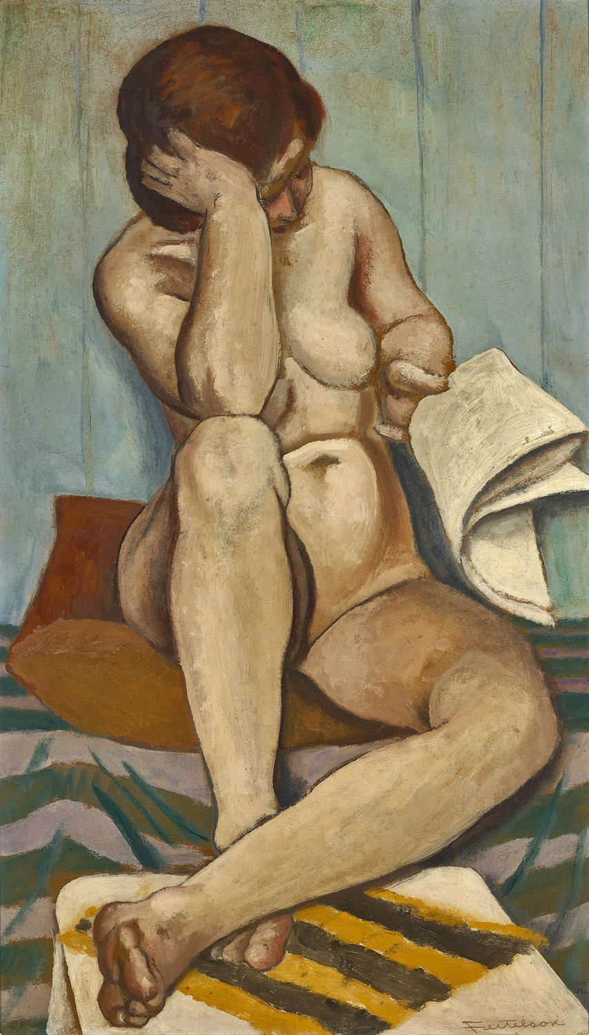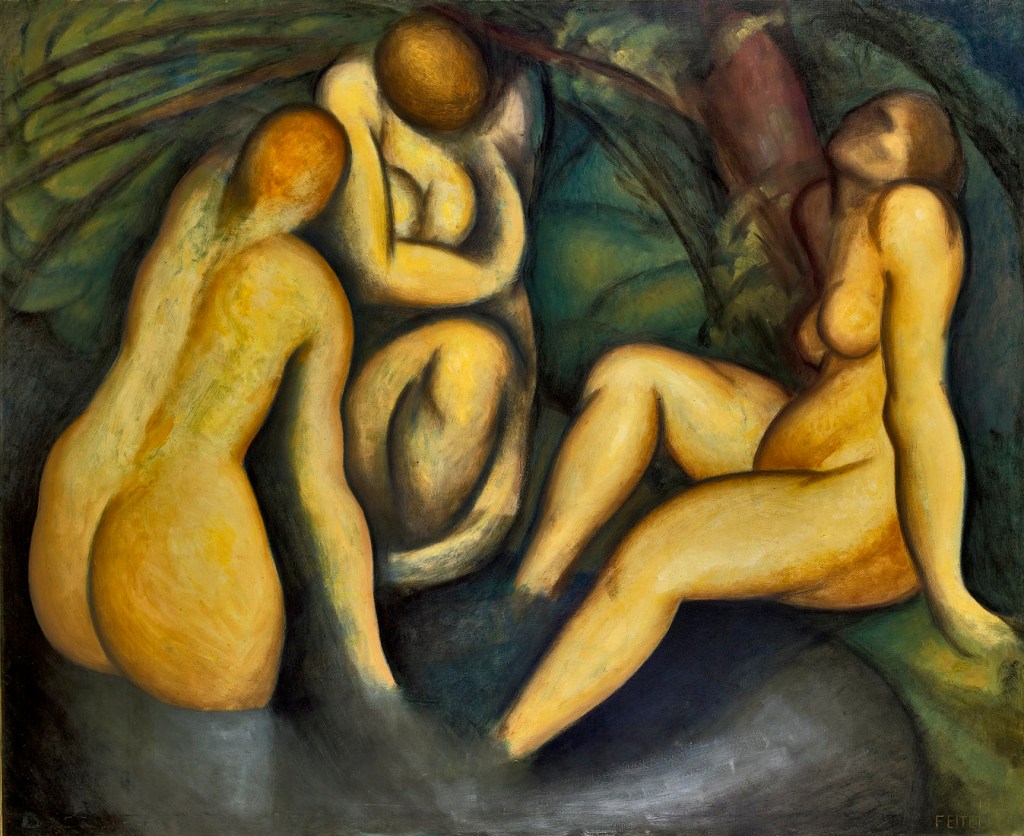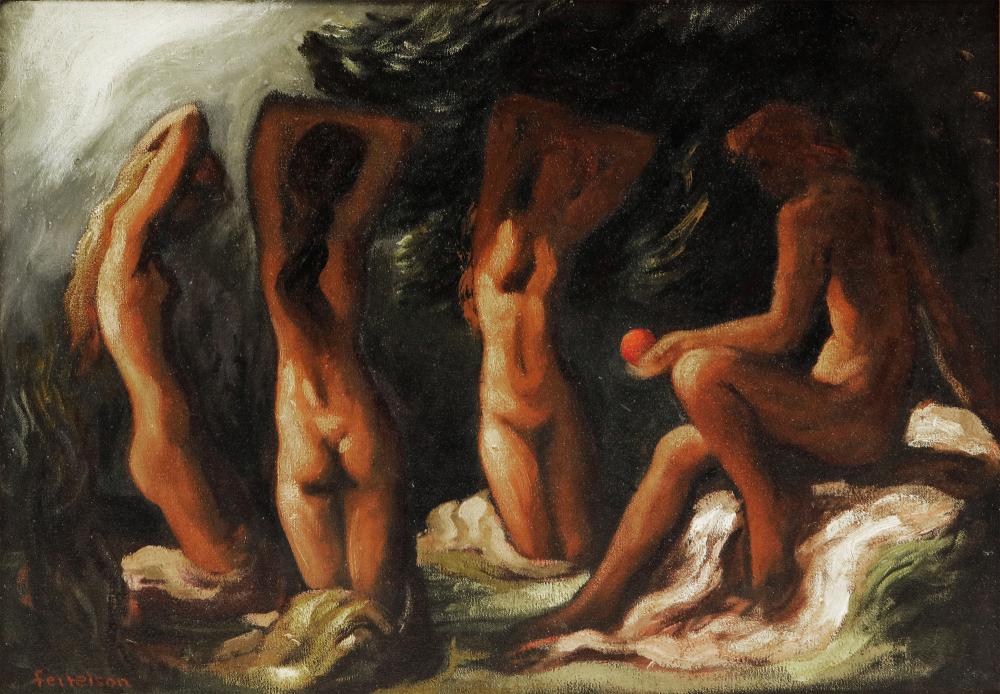 Lorser Feitelson (Savannah, Georgia, USA, 1898-1978) fue un artista clave en la elaboración del arte estadounidense del siglo XX. Su obra con un abstracto geométrico con colores intensos, destacados, y rígidamente delimitados por líneas rectas, dieron lugar al movimiento denominado «Hard Edge Painting» Sin embargo, en un periodo previo al de la abstracción de 1940, creó también una pintura modernista que resulta muy destacada. En ella influyen Matisse, Duchamp y los surrealistas. Lógicamente, debo referirme a ella cuando hablo de sus desnudos.