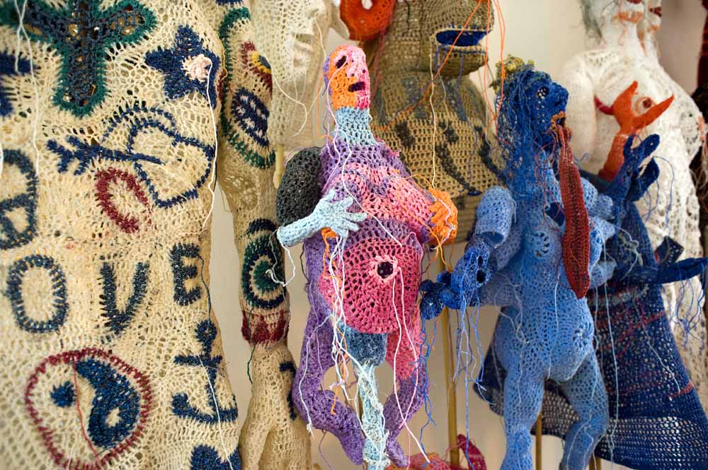 Al contemplar la obra escultórica de Johanna Schweizer (Enschede, Overijssel, Holanda, 1946) no nos extraña que se la conozca como la Louise Bourgeois holandesa. Sus esculturas realizadas con colores llamativos y usando la técnica del crochet tienen un fuerte componente sexual, pero abarcan un conjunto muy variados de temas: sexualidad y sensualidad, religión y paganismo, folklore y leyendas…