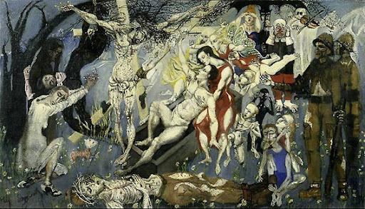Philip Everwood (Nueva York, Nueva York, USA, 1901-1973) tuvo una amplia actividad arrtística como pintor, muralista, escultor, grabador, ilustrador y novelista. En su primera etapa fue particularmente crítico contra cualquier forma de opresión social y a favor de los derechos civiles. Mas tarde, después de la Gran Depresión, se fue centrando más en temas religiosos. Su obra, figurativa, tiene la influencia de artistas como El Greco, El Bosco, Brueghel, Goya, Daumier o Toulouse-Lautrec. En las «Biografías de Artistas» presentada por Barewalls.com leemos, junto a los comentarios anteriores: