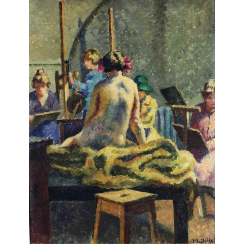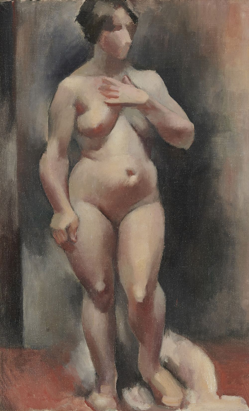 Mainie Jellet (Dublín, Irlanda, 1897-1944) fue una de las artistas cuya labor en la promoción del arte moderno fue más decisiva en Irlanda. Formada inicialmente en Londres donde inició su andadura con una pintura de tipo impresionista, viajó a Francia donde, de la mano de André Lhote y Albert Gleizes, descubrió el cubismo. Este estilo que podemos apreciarlo en muchos de los desnudos que les presento. Finalmente encaminó sus pasos hacia el abstracto.