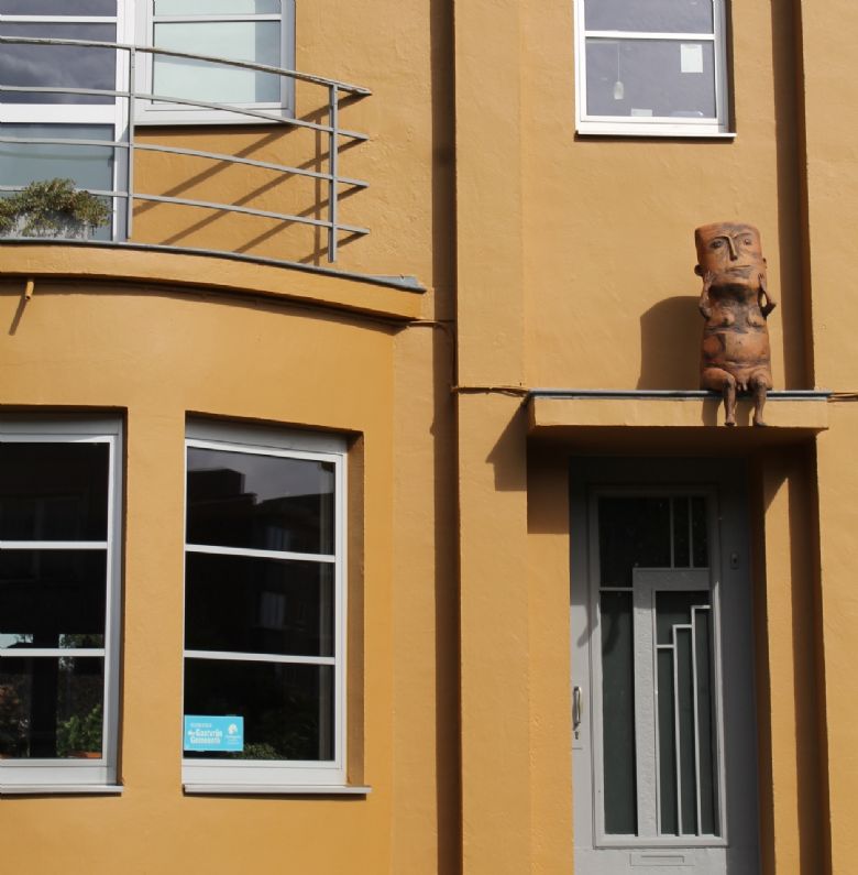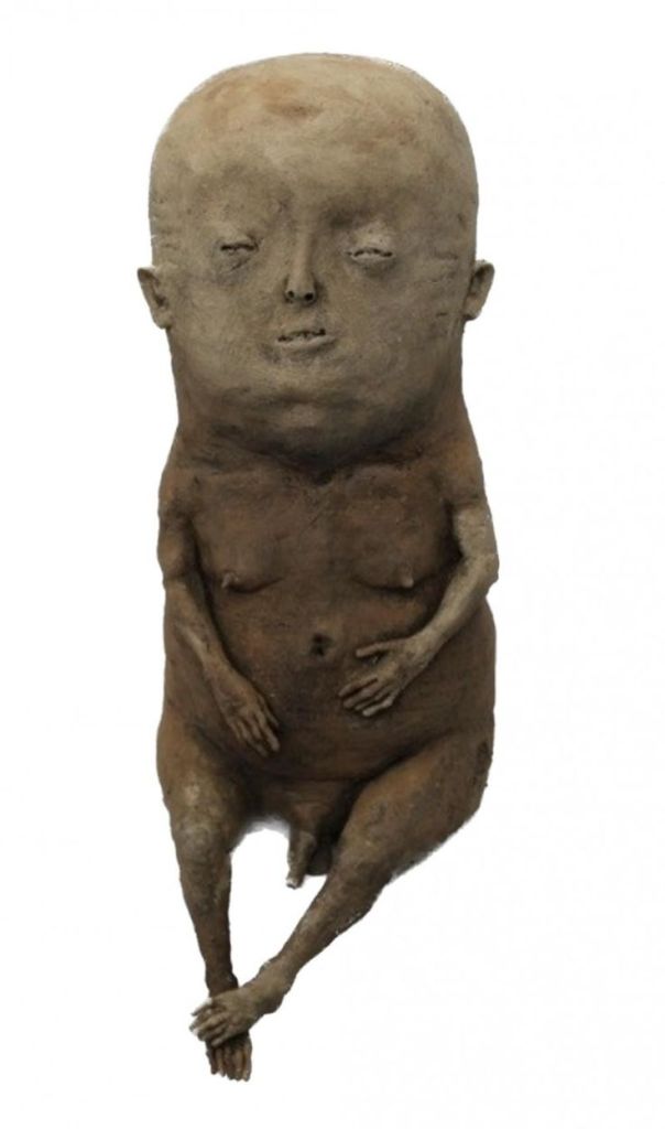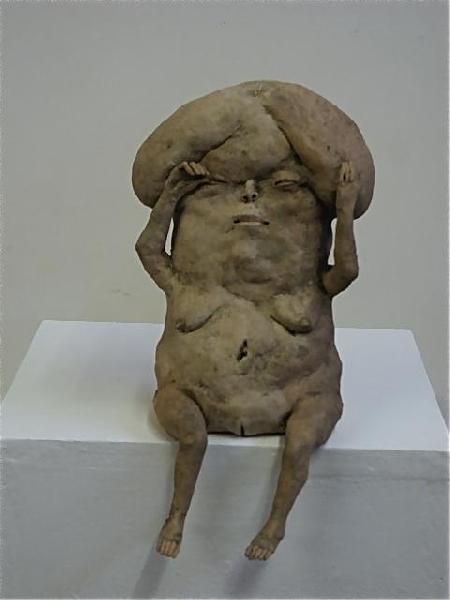 «Peter Vanbekbergen (°1962) construye esculturas de arcilla, fuertes y vulnerables a la vez. Cada escultura parte del ser humano, pero es única y presente. Poseen una gran empatía y se integran en el entorno como personas unitarias. Su fascinación por lo imperfecto y lo anómalo es sorprendente. Además de figuras humanas, también le gusta hacer esculturas de perros».