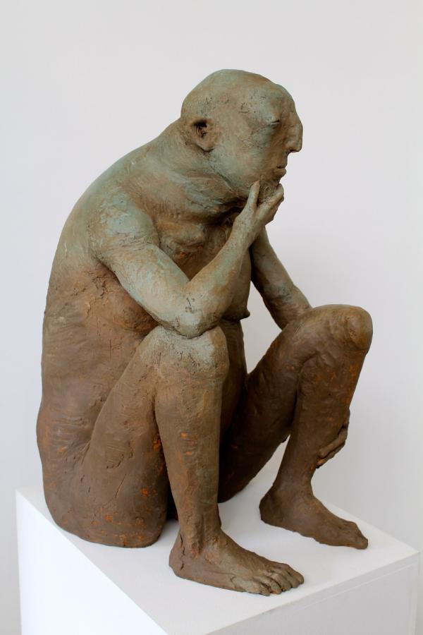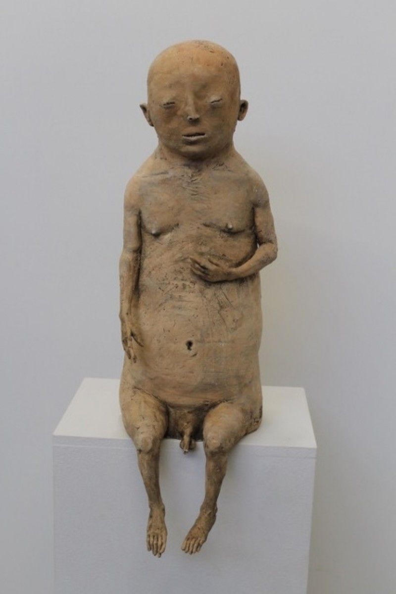 «Peter Vanbekbergen (°1962) construye esculturas de arcilla, fuertes y vulnerables a la vez. Cada escultura parte del ser humano, pero es única y presente. Poseen una gran empatía y se integran en el entorno como personas unitarias. Su fascinación por lo imperfecto y lo anómalo es sorprendente. Además de figuras humanas, también le gusta hacer esculturas de perros».