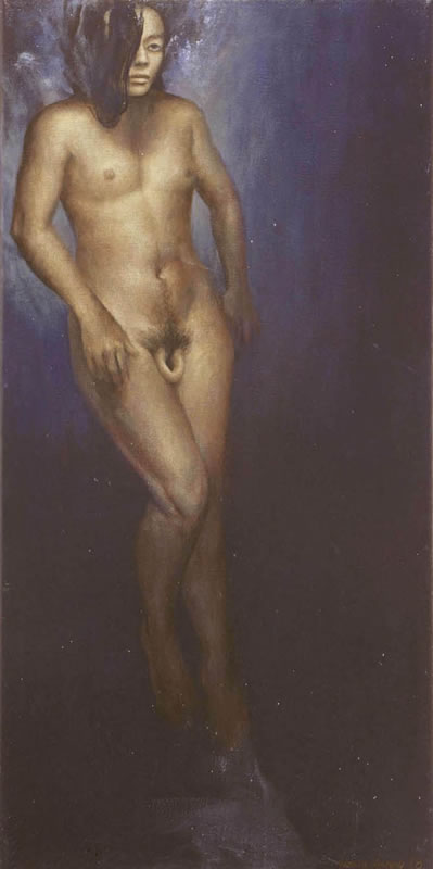 Inicio la presentación de sus trabajos con un autorrettrato. Del mismo se comenta en Art Galery NSW: