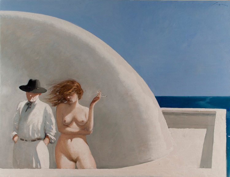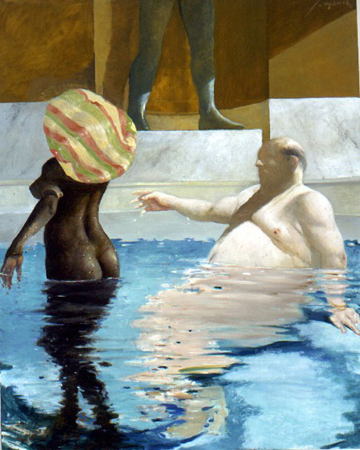 Julio Larraz (La Habana, Cuba, 1944) es un pintor, escultor, grabador y caricaturista cubano que vive en los Estados Unidos desde los años sesenta del pasado siglo, y actualmente tiene la doble nacionalidad. Sobre el mismo, la Galería Malborough comenta: