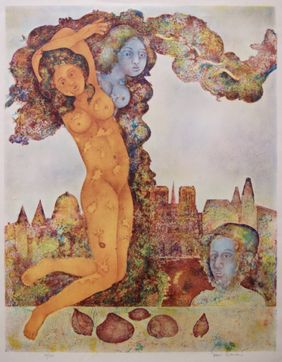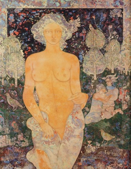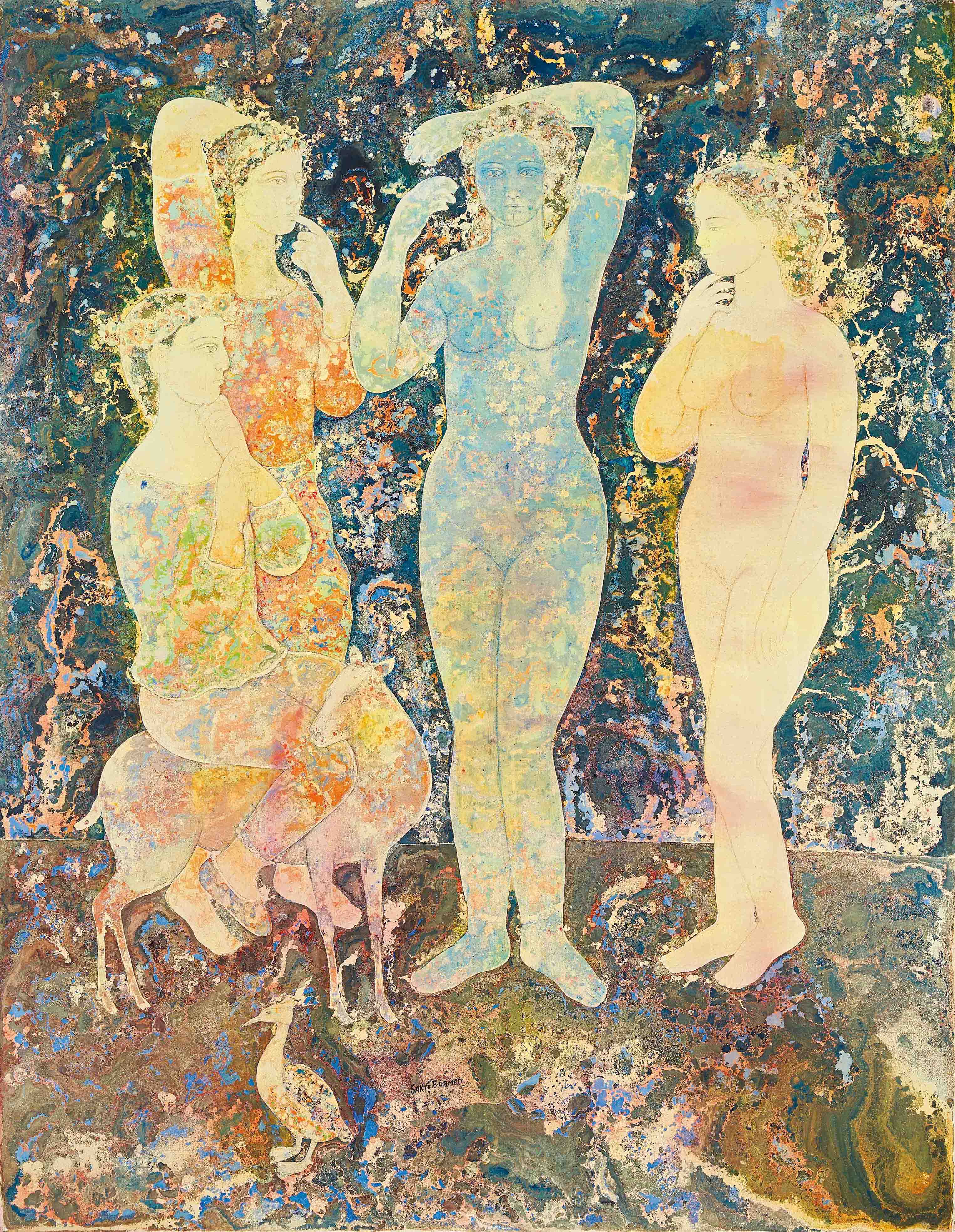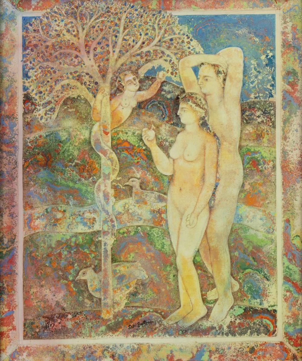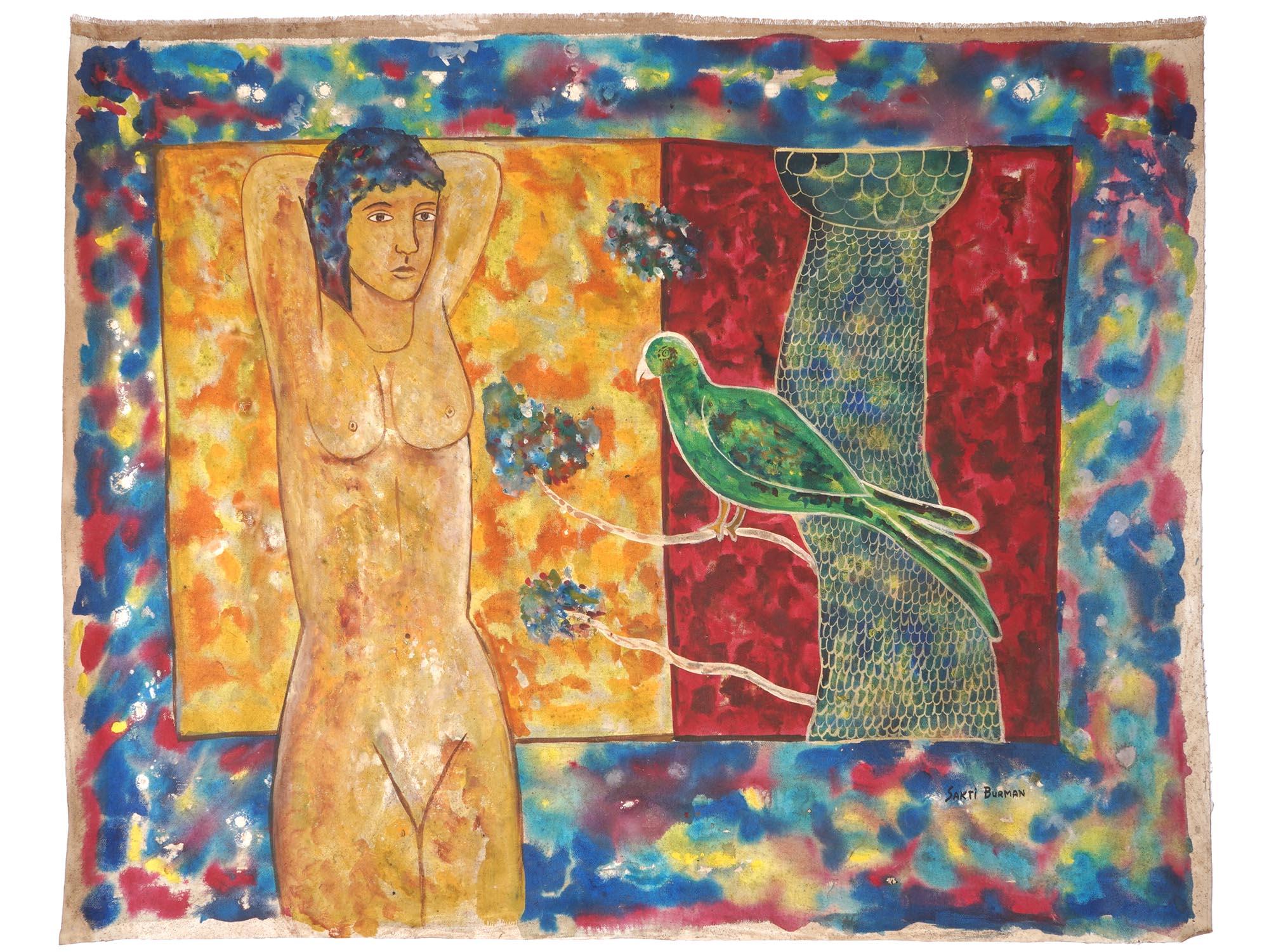 Sakti Burman (Calcuta, India, 1935) es un pintor escultor y grabador que inició su formación en 1951 en la Escuela de Bellas Artes de Bombay. Atraído por la obra de Van Gogh consiguió establecerse unos años en París y estudiar en la Escuela Nacional Superior de Bellas Artes. De vuelta a su país tuvo grandes dificultades económicas. Establecido actualmente en París, desde hace ya cinco décadas, su obra fantástica y mítica, con un gran colorido, ha ganado una fuerte aceptación, especialmente sus litografías a las que ha ido trasladando parte de su obra pictórica anterior.