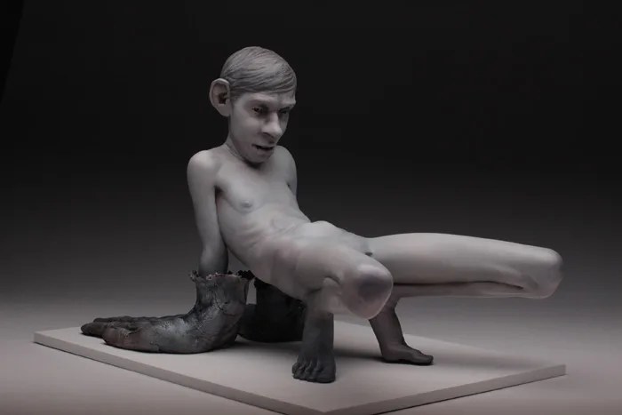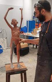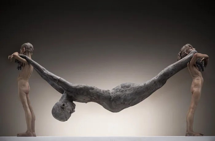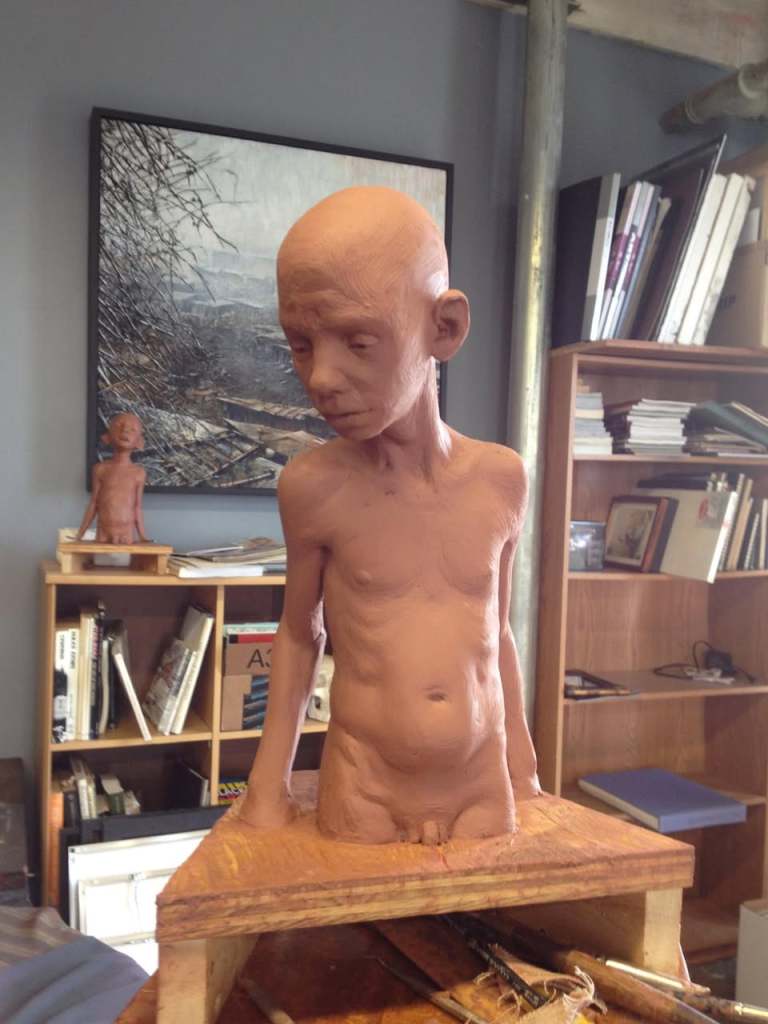 «En el caso de la serie de esculturas «Vestirse», la creación de cada pieza implica dos procesos distintos: uno de control y orden, y el otro, opuesto, de descontrol e incitación al caos. El elemento figurativo se crea modelando a los niños en arcilla. Este proceso consiste en imponer o «dar forma» a partir de la arcilla. En cambio, los apéndices con los que se «disfrazan» los niños se moldean en vivo, un proceso que captura la forma directamente del sujeto mediante el moldeado y la fundición. Esto requiere menos interpretación y habilidad artística que la escultura tradicional».