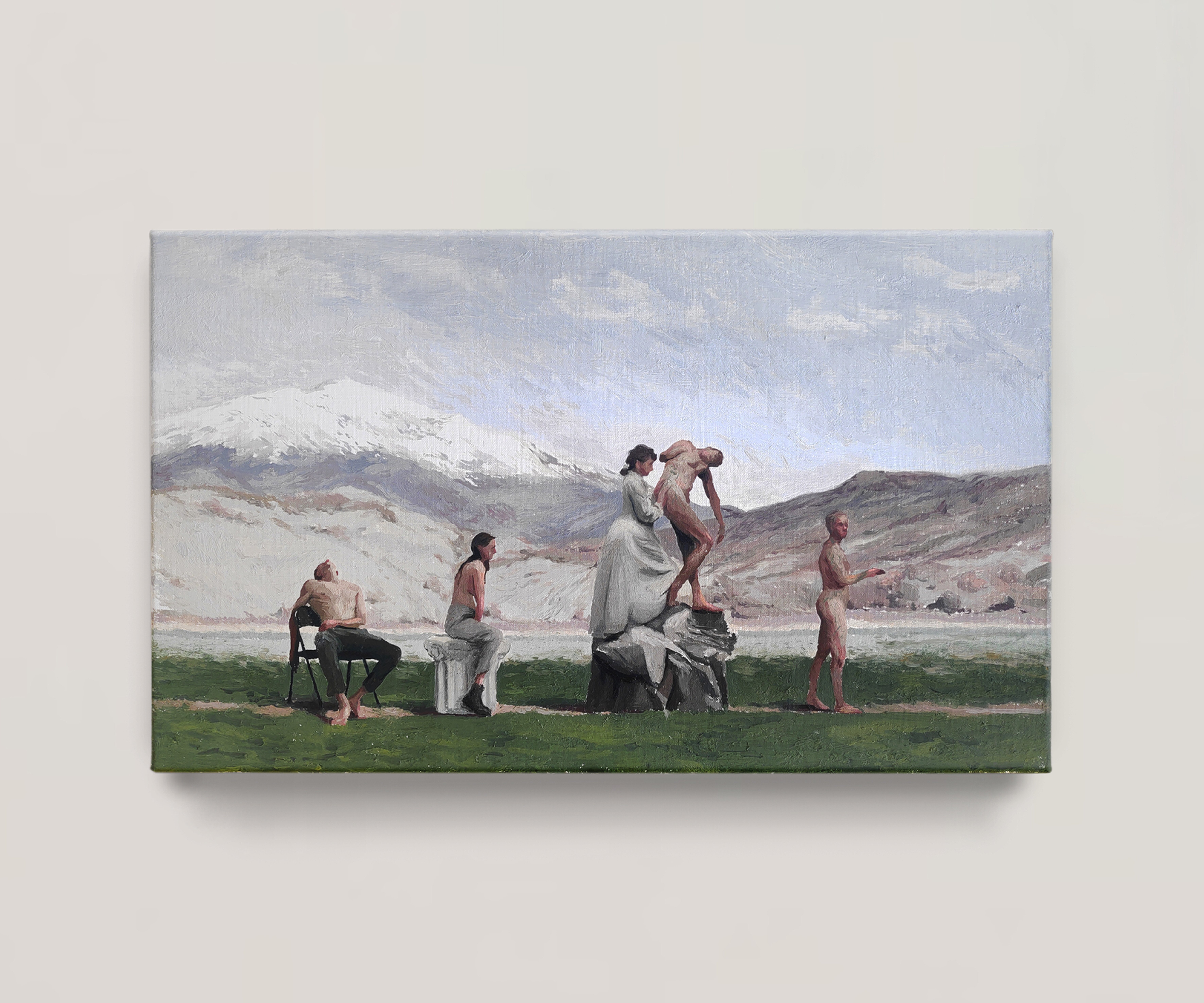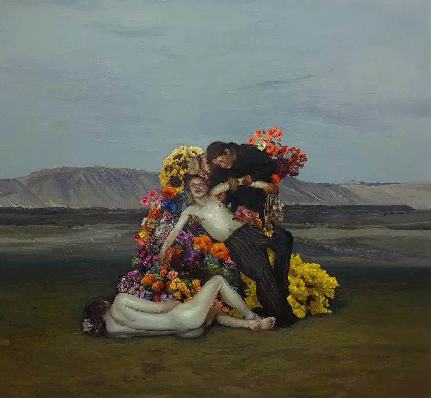 «Me alimento de la contemporaneidad para generar una reflexión vital. Mi obra es muy escenográfica: busco el impacto que se genera ‘al abrirse el telón’, una pequeña ventana al mundo que vivimos, que trata de reflexionar sobre todo aquello que nos preocupa, vida, muerte, anhelos… En las composiciones, genero una atmósfera romántica y decadente sobre un paisaje aparentemente tranquilo. Ahí, y junto a la expresividad de la pintura, los personajes van cobrando vida para acercarnos a los instintos humanos, a las pasiones, miserias y todo lo que rodea la existencia humana».