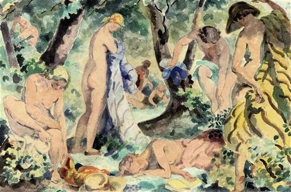 Igualmente, óleos y acuarelas con una temática centrada en el baño y clara influencia de Cezanne.