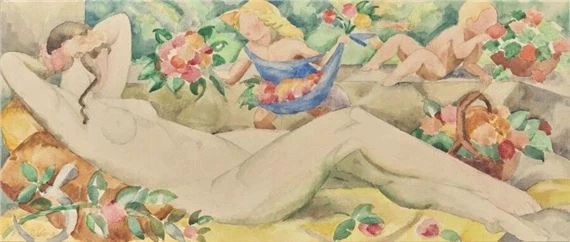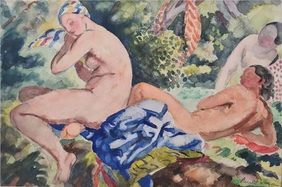 Igualmente, óleos y acuarelas con una temática centrada en el baño y clara influencia de Cezanne.