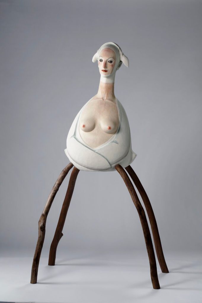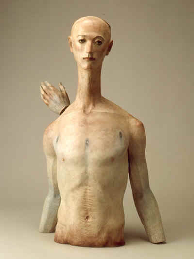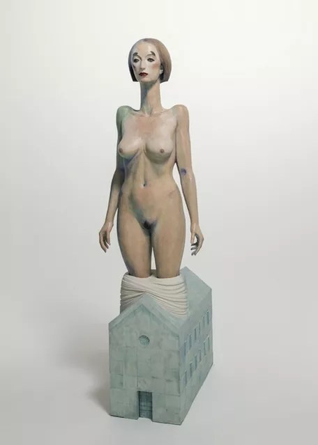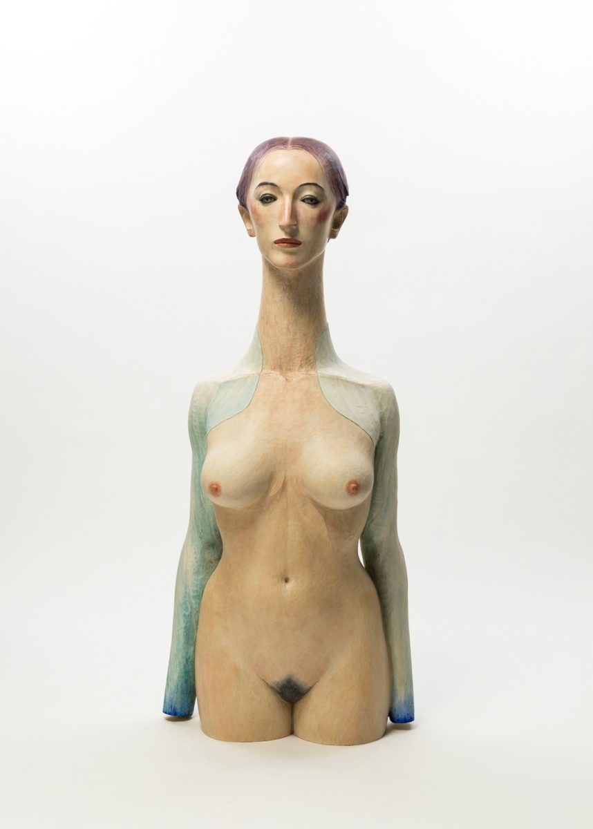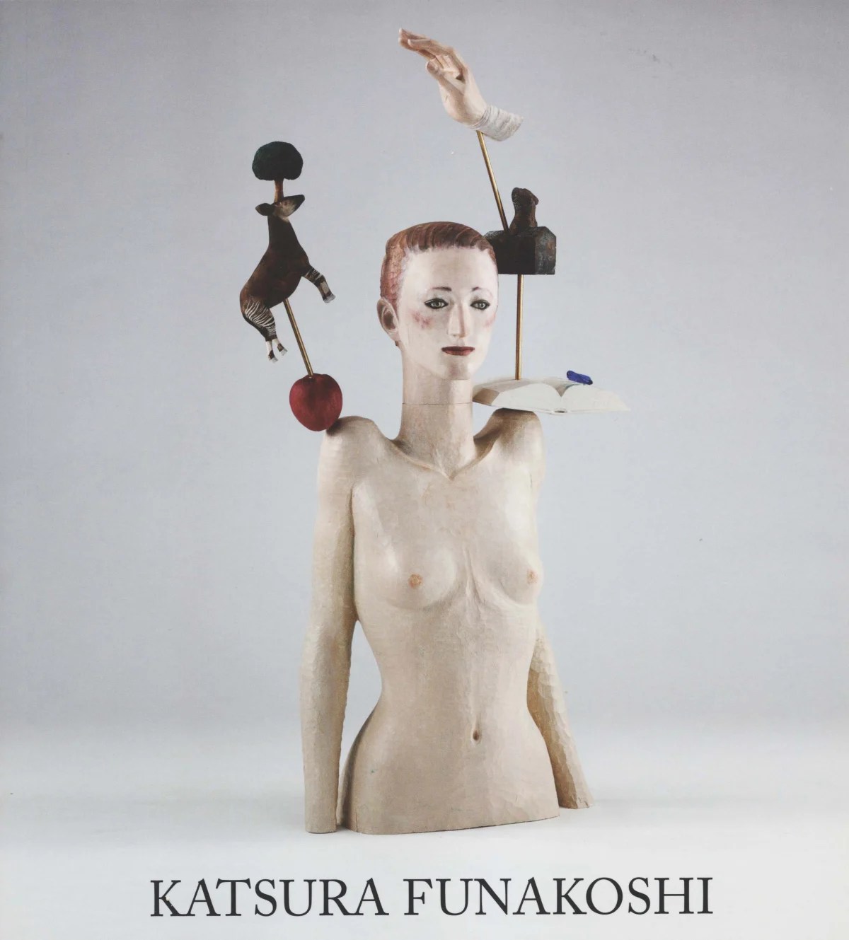 «Katsura Funakoshi fue considerado una figura destacada en el campo de las artes visuales en Japón. Talladas meticulosamente en madera de alcanfor, sus torsos híbridos tienen una piel sutilmente modelada y ojos de mármol luminiscentes que interactúan tanto con la fantasía como con la realidad. Humanas y surrealistas, sus figuras son tótems para la conexión entre la mente y el cuerpo y tienen una gran presencia poética y etérea; una profunda quietud y quietud en los ojos y expresiones faciales, extraordinariamente directas pero serenas y sublimes. En sus obras posteriores, guirnaldas hechas de libros, frutas, cuerpos voladores y manos flotantes se extienden desde los hombros y las cabezas de las figuras encarnando sus sueños y pensamientos. De estas obras, el artista dijo: «Cuando algo sucede, puedo ver muchas cosas que se elevan desde el hombro de una persona, como una aurora y un arcoíris, orbitando sobre la cabeza».