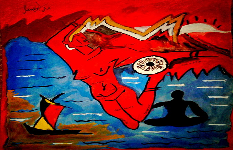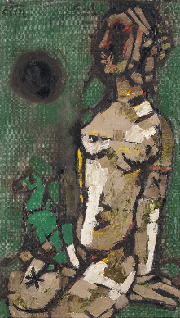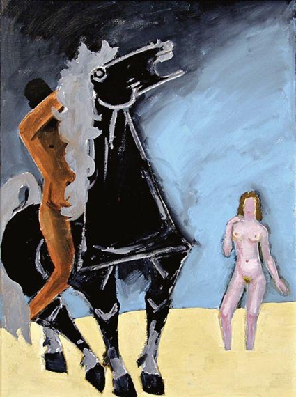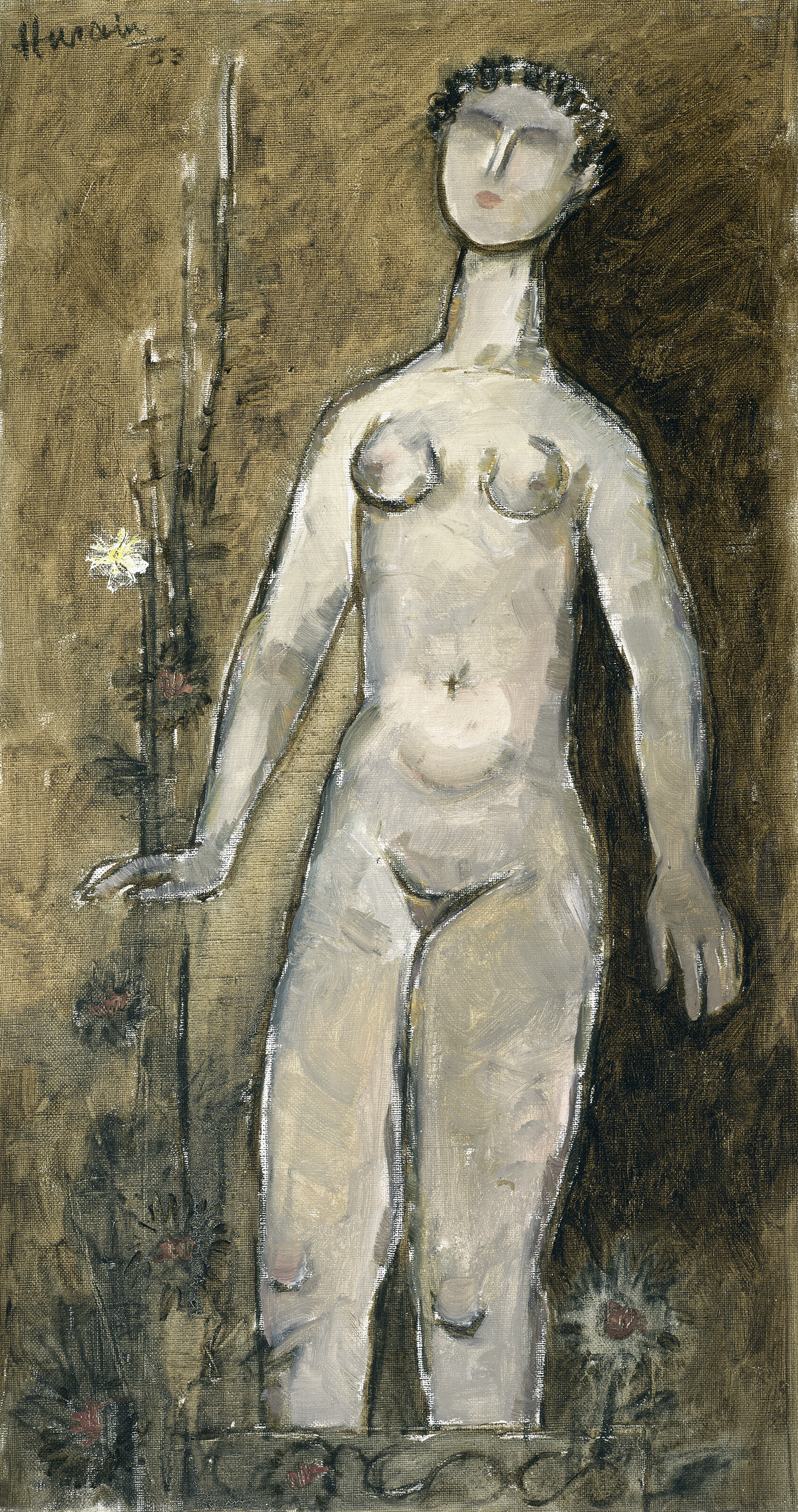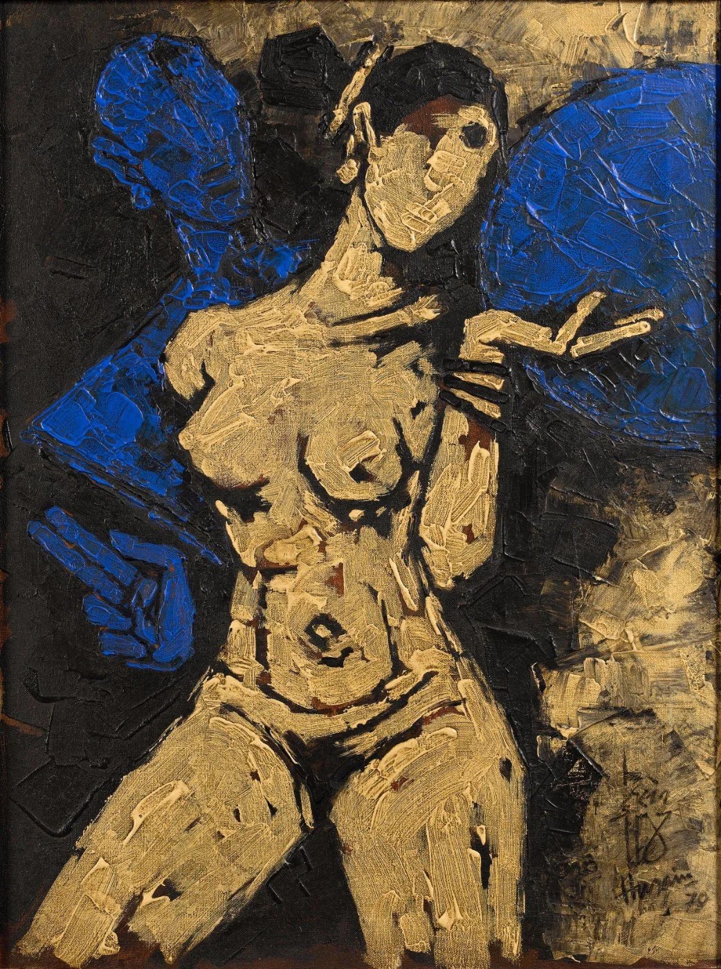 Maqbool Fida Husain (Pandharpur, India, 1915-2011) fue un pintor, fotógrafo y cineasta hindú creador de una obra fuertemente colorista, influenciada formalmente por Cézanne y Matisse, y temáticamente por el panteón de dioses y diosas de la tradición hindú. Perteneció al «Progressive Artists’ Group», en el que se reunió la vanguardia artística de su país. Obtuvo numerosos premios y su obra, a partir de 1971, se dió a conocer en todo el mundo.