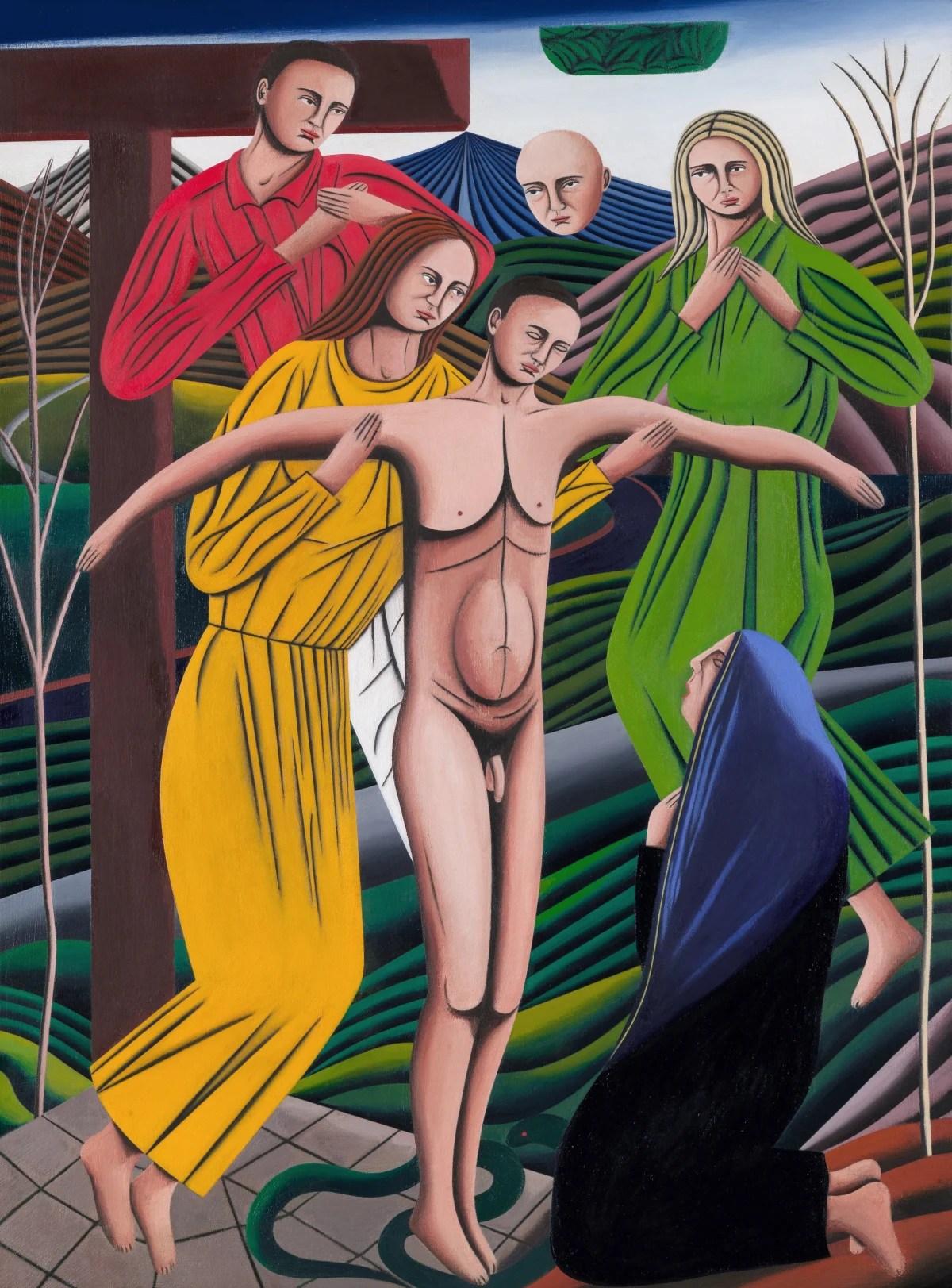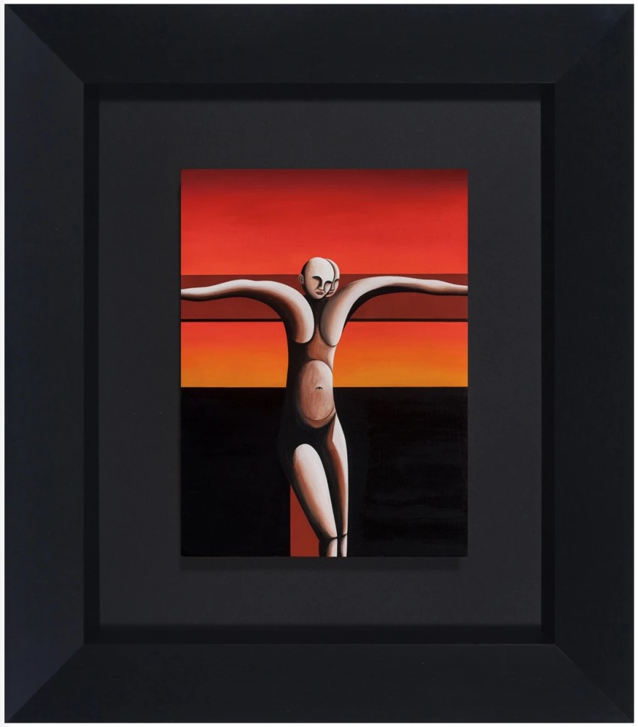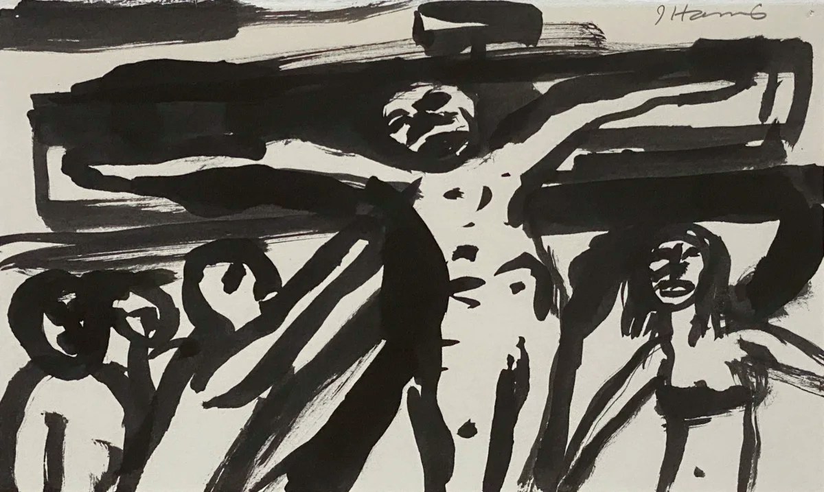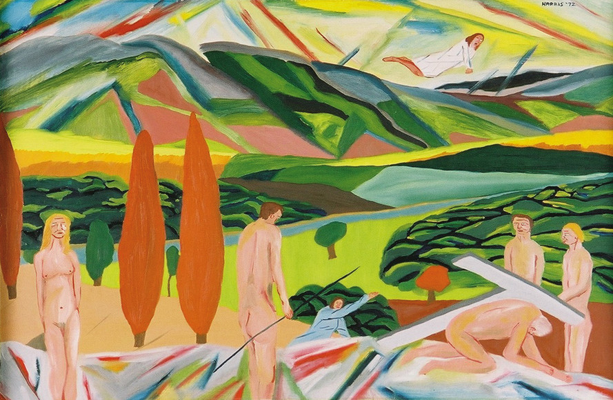 Jeffrey Harris (Akaroa, Nueva Zelanda 1949) es un artista que salvo por una pequeña estancia en los Estados Unidos, vive y trabaja en su país. Sin formación académica convencional, su obra muestra la influencias de Francis Bacon especialmente en lo concerniente a sus Crucifixiones de las que nos lega un gran número de pinturas y dibujos. Aunque sus trabajos iniciales se centran en el mundo doméstico con el tiempo su obra ha ido adquiriendo una fuerte inspiración religiosa.