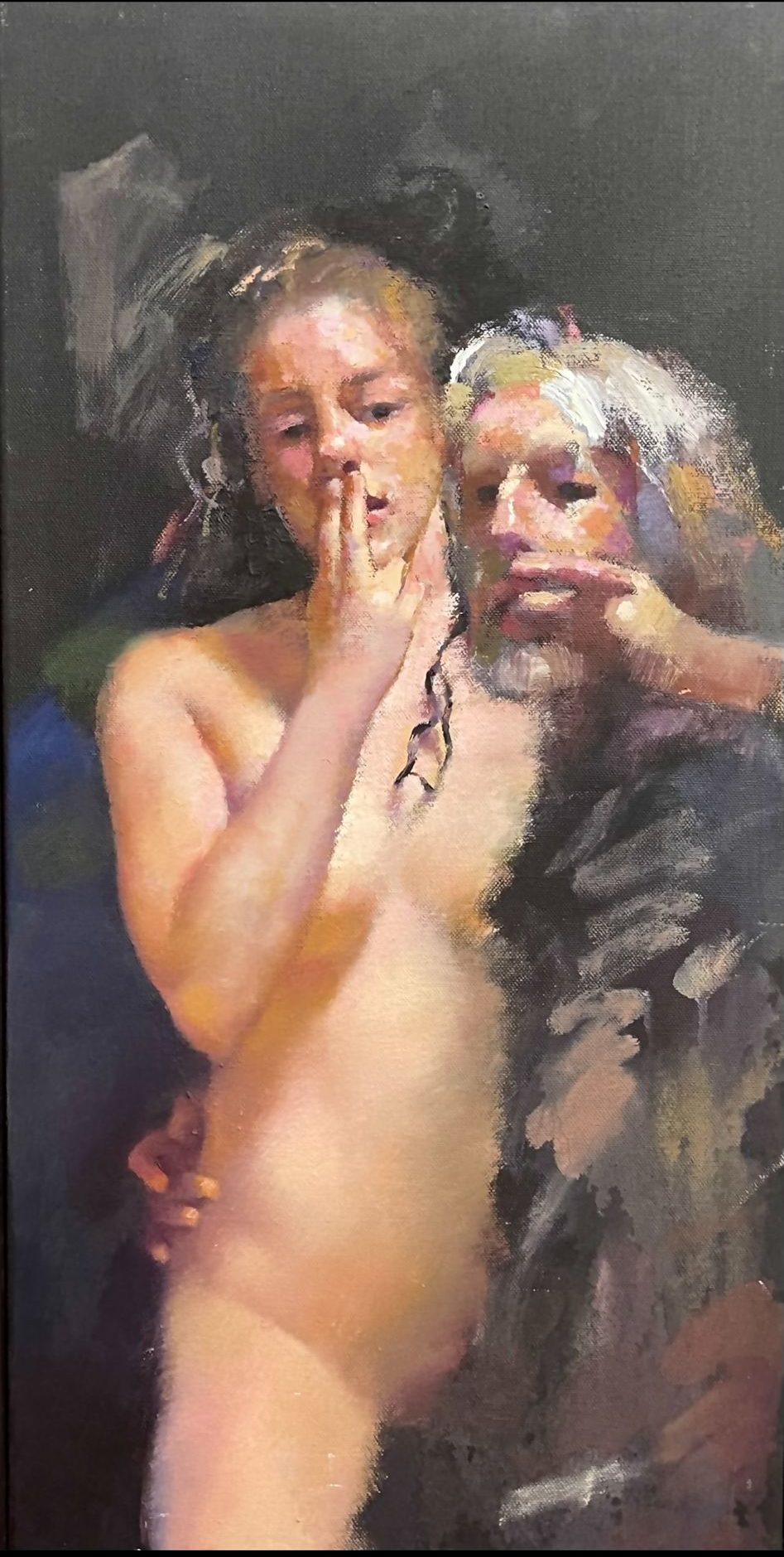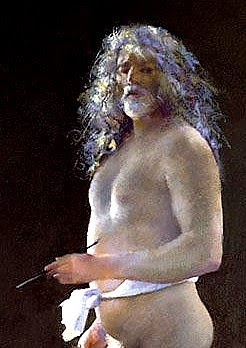 Robert Lenkiewicz (Londres, Reino Unido, 1941-2002) es uno de los referentes del arte británico del siglo XX. Rechazado por muchos «gurús» del arte, pero con una gran aceptación de un público que normalmente no pisa un museo, sus más de 10.000 obras nos muestran su original vida y obsesiones. El mundo de la salud mental, el desarraigo, la adicción, el sexo y la muerte, son tratados por este artista y profesor del que se dice que fue un obsesivo bibliófilo. Empiezo mostrándoles varios autorretratos (algunos con las clásica referencia al «artista y la modelo»).