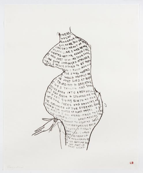 «No me abandones» surgió de Bourgeois, quien comenzó sus obras pintando torsos masculinos y femeninos de perfil sobre papel, mezclando pigmentos de gouache rojo, azul y negro con agua para crear siluetas delicadas y fluidas. Bourgeois luego le pasó las imágenes a Emin, quien más tarde confesó: «Llevé las imágenes conmigo por todo el mundo, de Australia a Francia, pero tenía demasiado miedo de tocarlas». Emin superpuso fantasía a las formas de Bourgeois, dibujando figuras más pequeñas que interactuaban con los torsos como amantes liliputienses, representando los deseos y las ansiedades del cuerpo. En una, una mujer besa un falo erecto; en otra, una pequeña forma similar a un feto sobresale de un vientre hinchado. En muchas, la caligrafía de Emin inscribe las imágenes con una narrativa, plasmando en palabras las emociones expresadas en los vibrantes gouaches de Bourgeois».