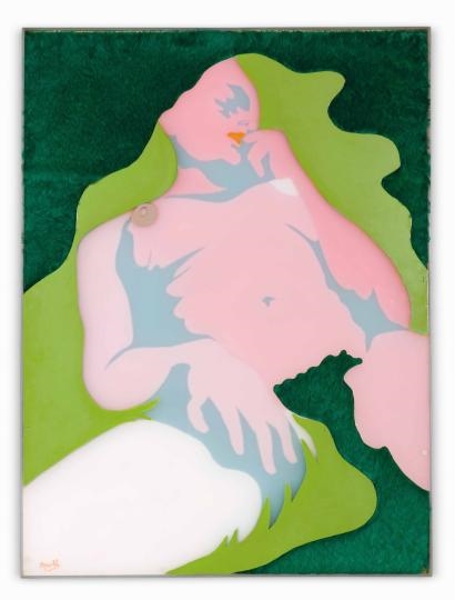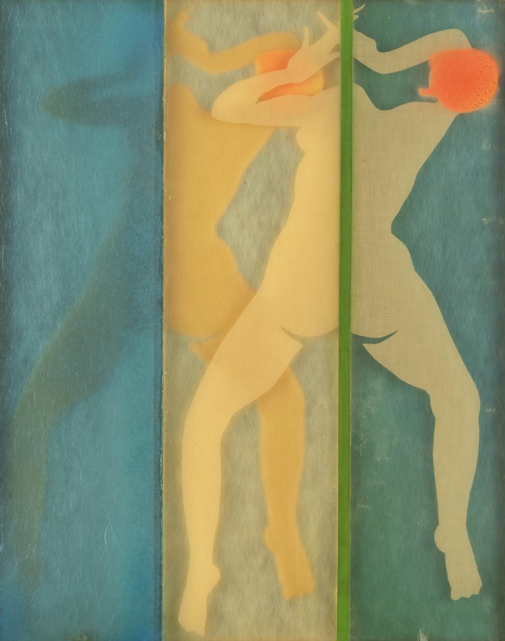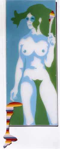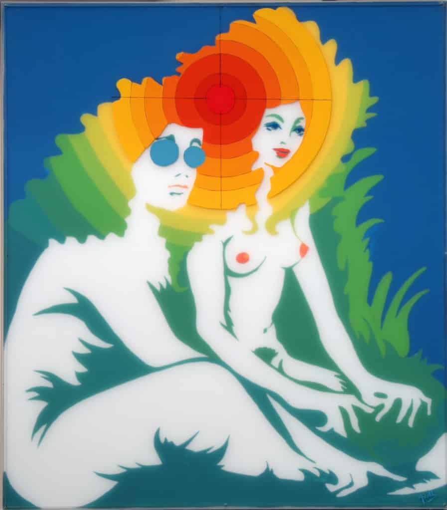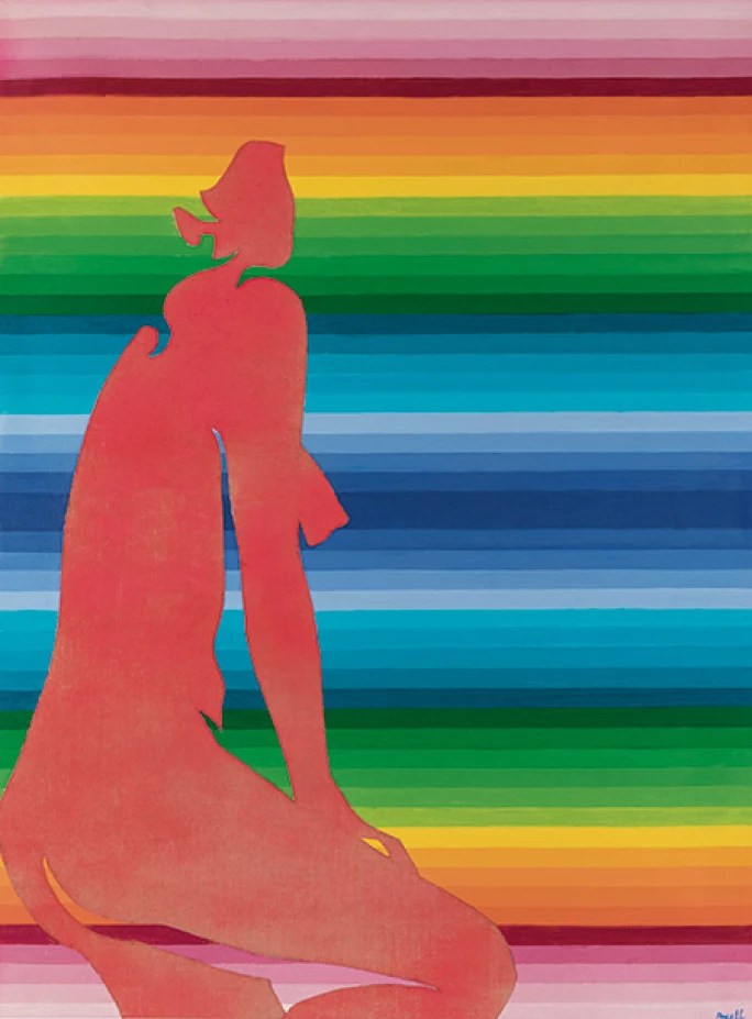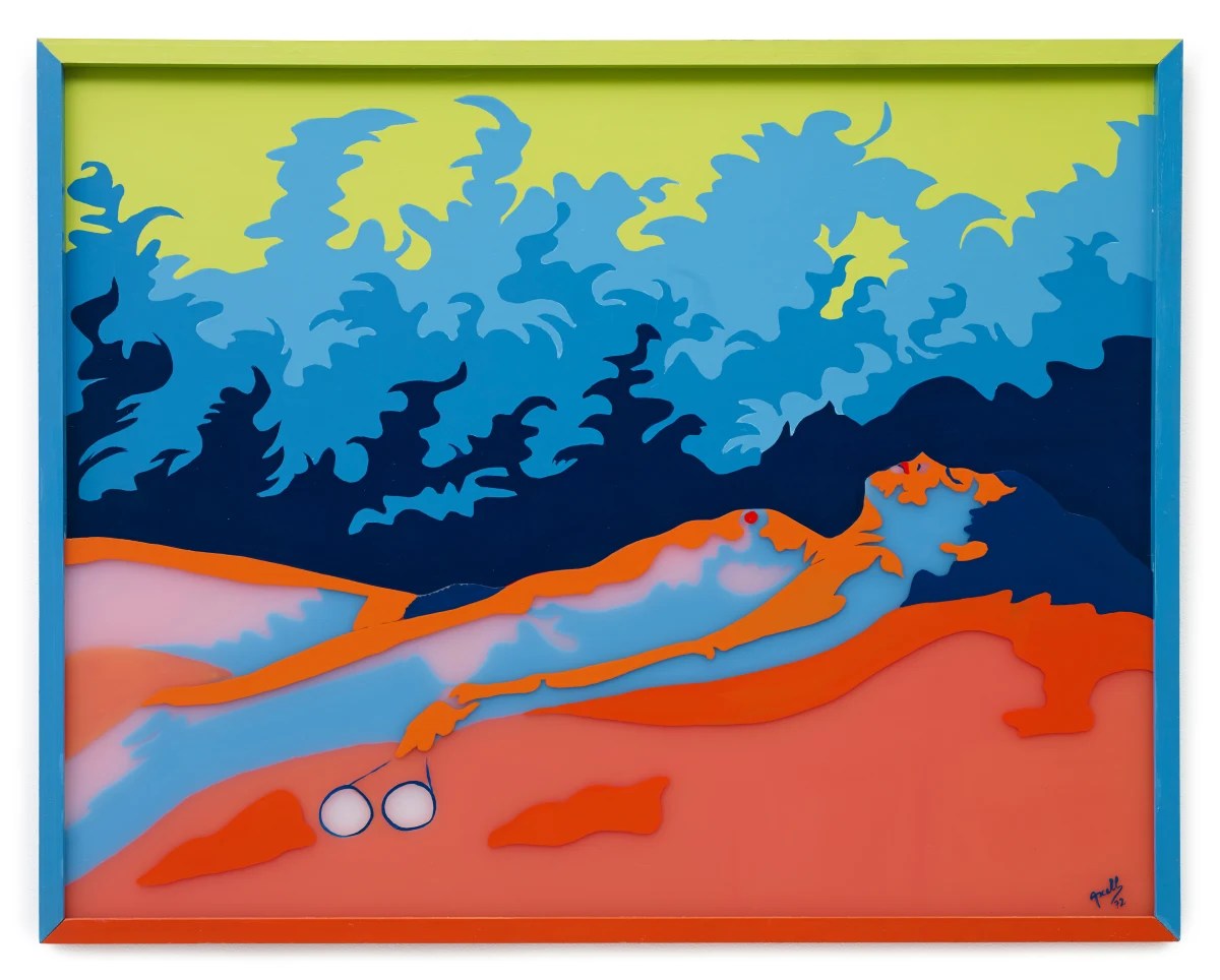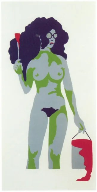 Evelyne Axell (Namur, Bélgica, 1935-1972) es una de las figuras más destacadas del pop-art europeo. Sus imágenes, femeninas y con un alto grado de erotismo (homoeróticas), se realizan generalmente recortando las siluetas sobre plástico transparente que se adhieren a paneles de fondo. La aplicación del color es asimilable, a mi entender, a la usada generalmente en el pop-art americano. La artista nos dice: