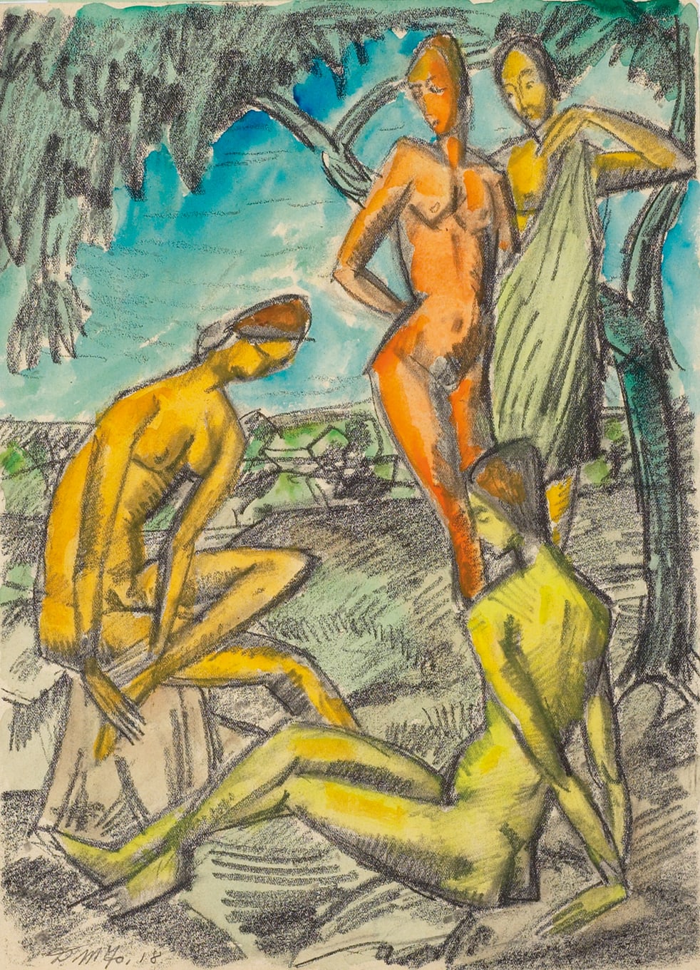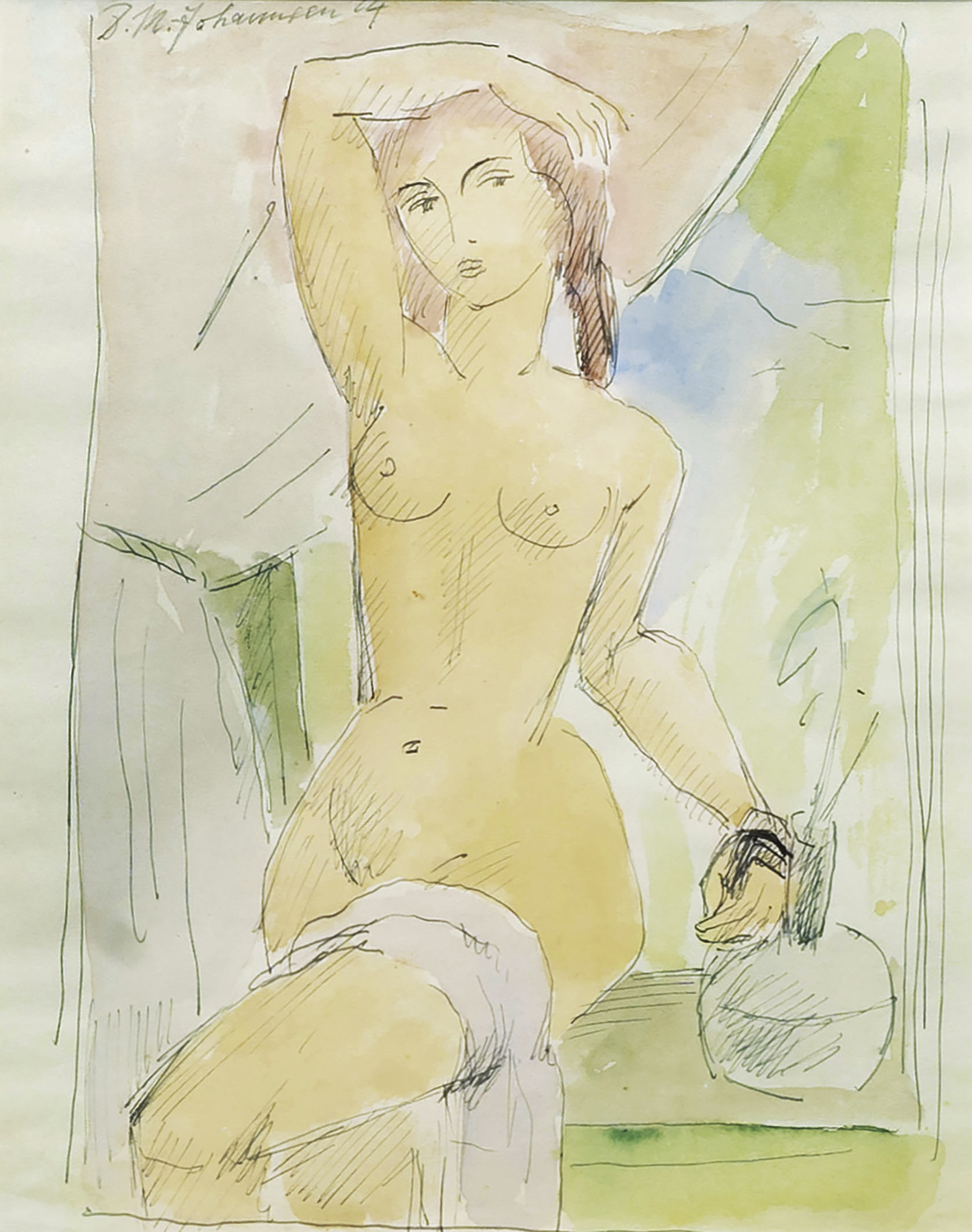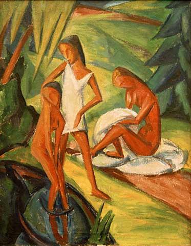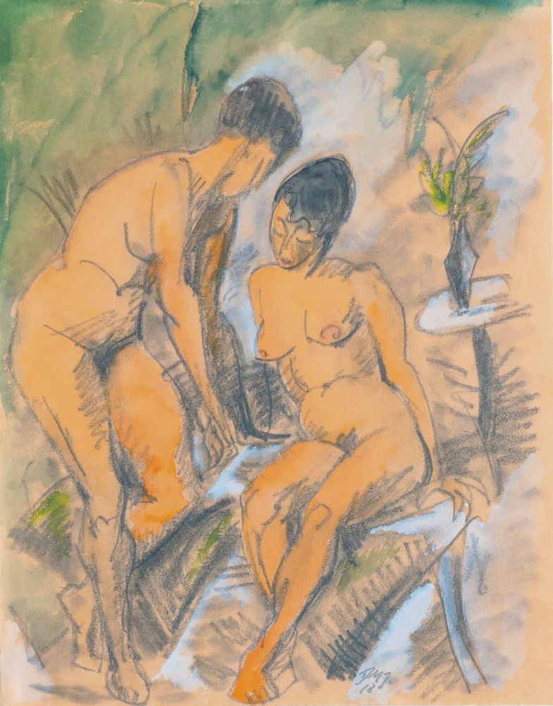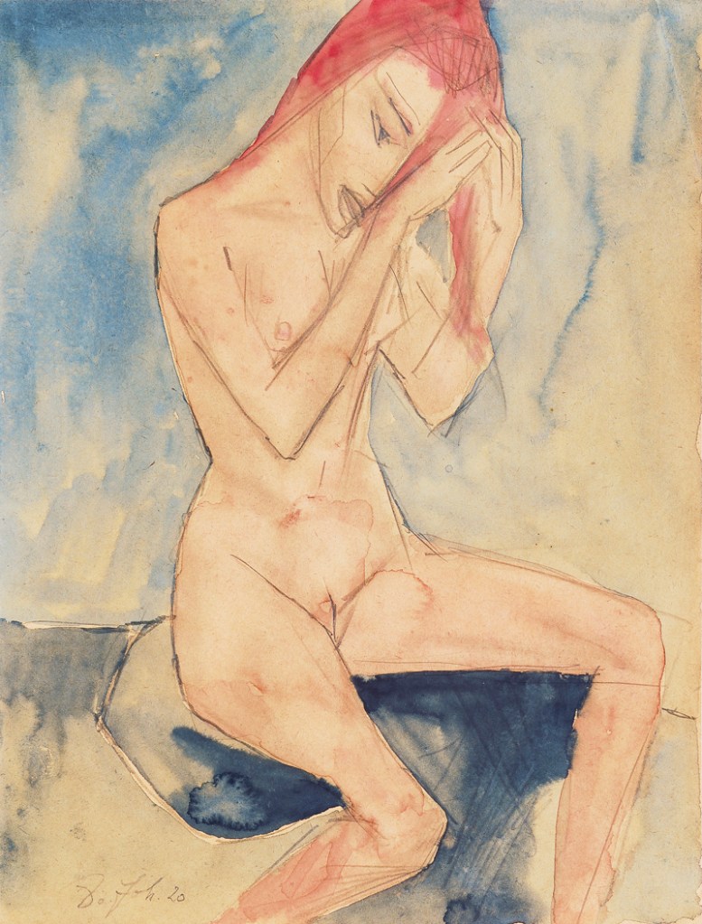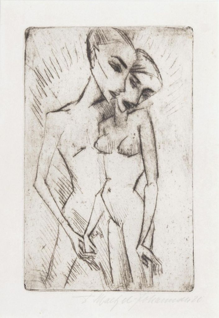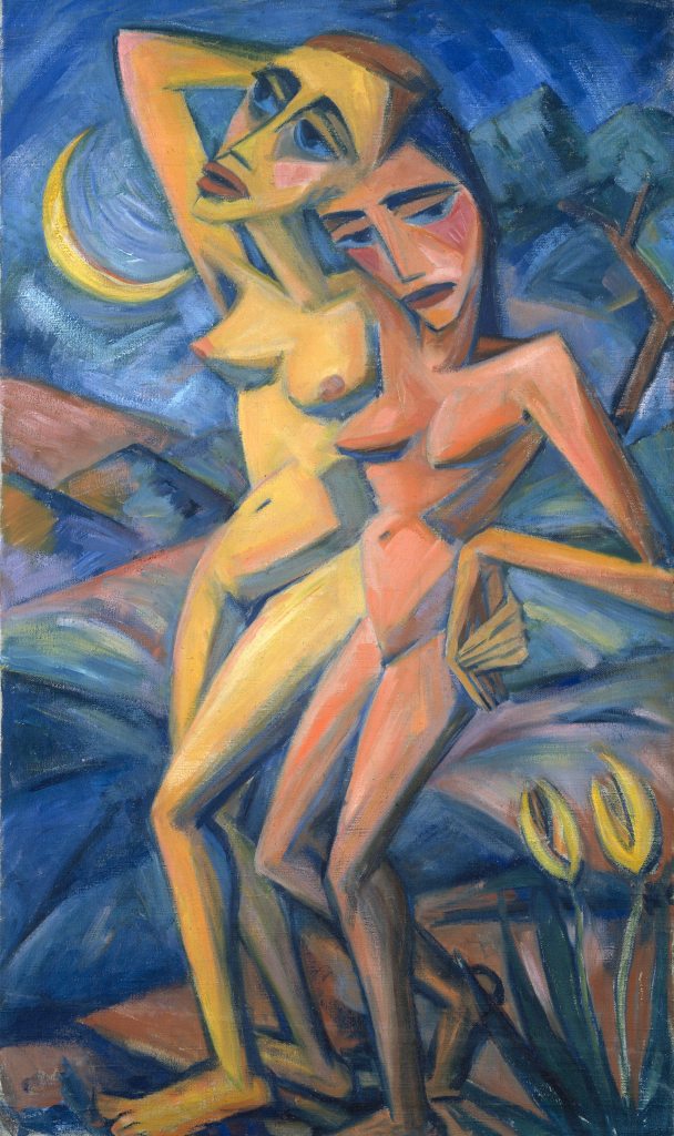 Dorothea Maetzel-Johannsen (Lensahn Alemania, 1886-1930) fue una importante artista que se destacó a principios del siglo XX. Alumna de Lovin Corinth fue cofundadora, con su marido Emil Maetzel, del grupo de la Secesión de Hamburgo. En su entrada de Wikipedia se indica que esta pintora pertenece a la «Nueva Objetividad», un grupo que se oponía al expresionismo imperante alrededor de 1910. Pese a ello, muchas de las obras de esta artista me recuerdan enormemente a las formas (no a los colores) de Kirchner, el famoso expresionista. Recordemos asimismo que algunos artistas, como Max Beckmann, han sido encuadrados en ambos movimientos supuestamente antagónicos.
