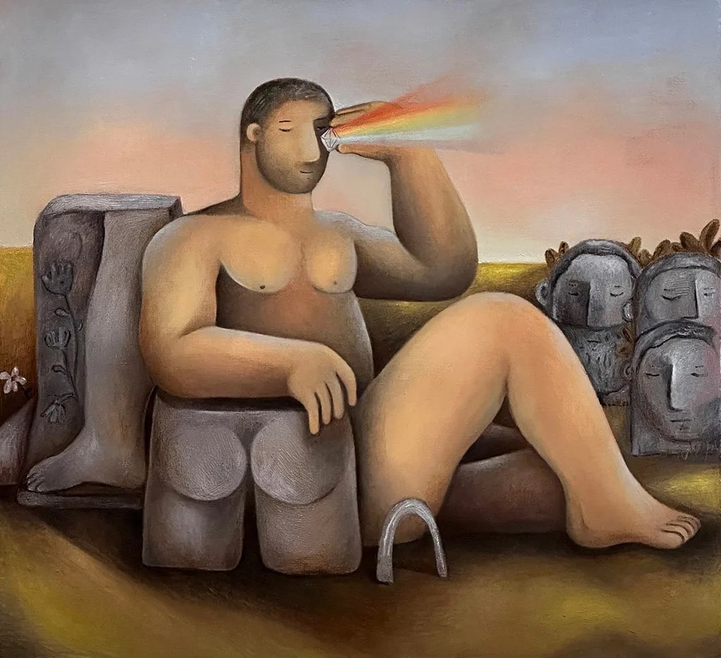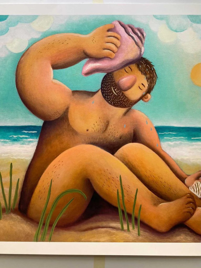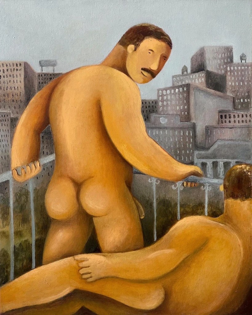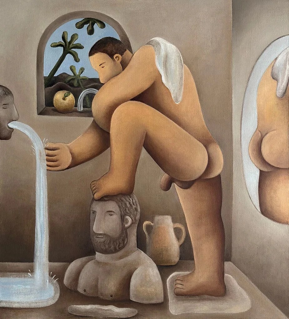 «Explorando los ámbitos del deseo sexual, el género y la identidad, Rodríguez emplea dibujos, pinturas y cerámicas que rinden homenaje a la figura masculina. Inspirándose en la pintura clásica, el arte naif y elementos del entretenimiento para adultos, su obra captura la esencia de los hombres inmersos en expresiones naturales de juego y fantasía».