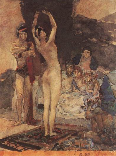 Mijaíl Aleksándrovich Vrúbel (Omsk, Siberia, Rusia 1856-1910) fue un pintor simbolista ruso aunque su estilo, heredero del arte bizantino y renacentista, tiene características muy personales. Miguel Calvo Santos en su página de Historia Arte, los define como un Simbolista Fantástico. Sus desnudos son relativamente escasos y muchos de ellos se apartan de este estilo y se inscriben más dentro de un realismo academicista. Aquí les muestro algunos ejemplos que he encontrado: