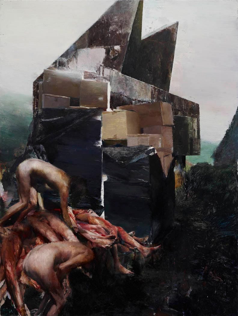 «Uno de los elementos centrales de su trabajo es la fragmentación del cuerpo. En muchas de sus pinturas, los cuerpos aparecen incompletos, distorsionados, cubiertos por máscaras, prótesis o vendajes. Esta representación del cuerpo roto o interferido remite tanto al dolor físico como a la alienación contemporánea. El artista ha explicado en varias ocasiones que su interés no es la representación literal de la violencia, sino la evocación de sus consecuencias psicológicas y culturales.