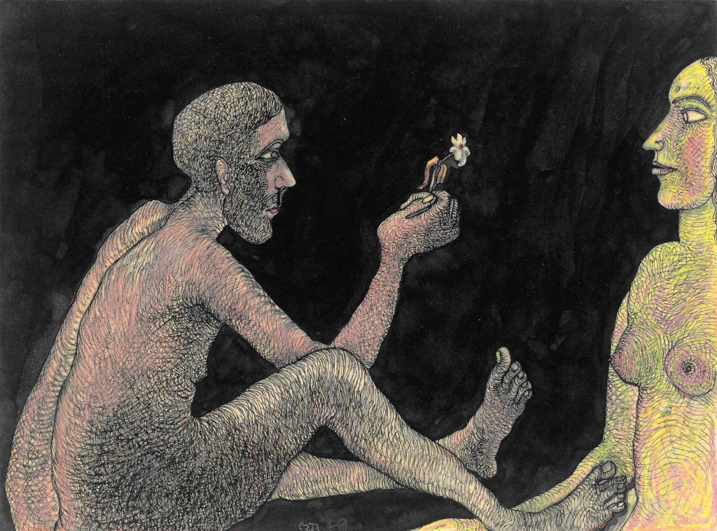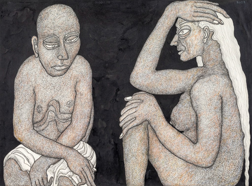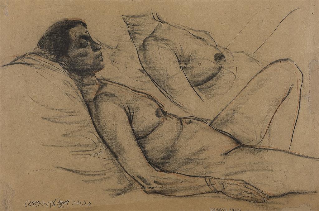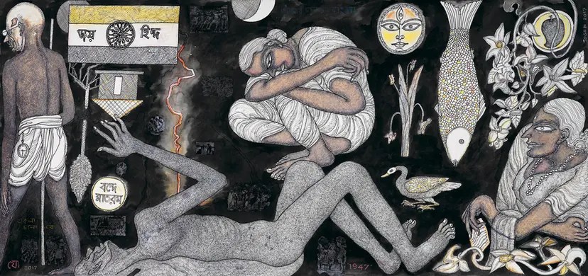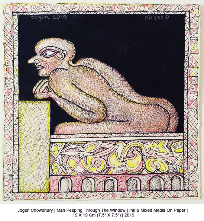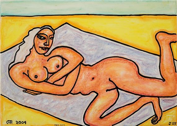 Jogen Chowdhury (Faridpur, Bengal, India, 1939) es uno de los grandes artistas contemporáneos de la India. Con una doble formación en Kolkata y en París, trabaja con tinta, acuarela y pasteles, aunque también emplea en algunos casos el óleo. Su personal estilo es glosado, de este modo en su página web: