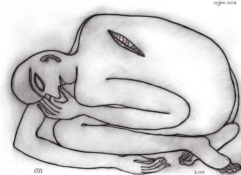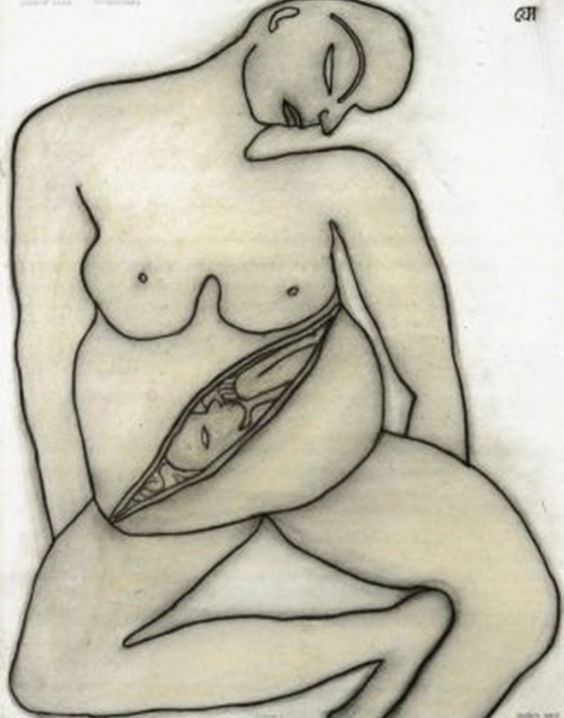 «Jogen Chowdhury ha sido ampliamente reconocido como el maestro de la línea continua. Al igual que Leger, Chowdhury se ha inspirado en la tradición lineal de Kalighat Pat, pero sus líneas son emotivas y se utilizan para expresar y sugerir el carácter de una persona. Esto se logra distorsionando la forma sin romper la línea, y en el mundo del arte joven y contemporáneo, la distorsión ha sido el mayor impacto de Jogen Chowdhury. Quizás por esto, una observación común de su obra es que sus «personas» son caricaturas. La persona resulta familiar para el espectador, pero es mucho más individualizada: el rostro es imaginario, pero la psique o las características son reales. La fuerza y la belleza de su técnica y su línea residen en este juego entre lo conocido y lo desconocido. En la obra de Jogen Chowdhury, la figura siempre está en primer plano, es primordial, lo transmite todo. Utiliza el color para dar volumen a sus figuras y la fluidez de sus líneas aporta un toque sensual a sus formas».