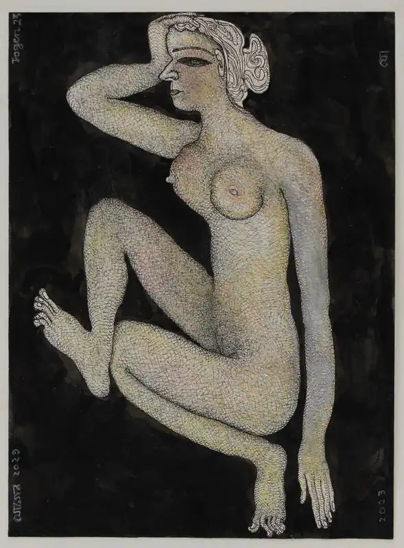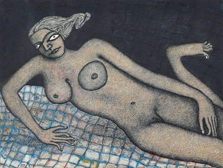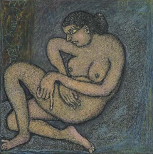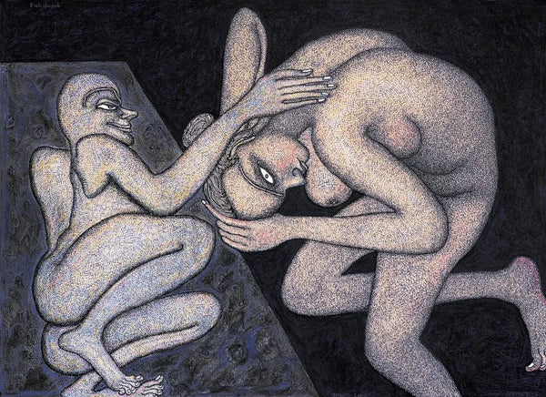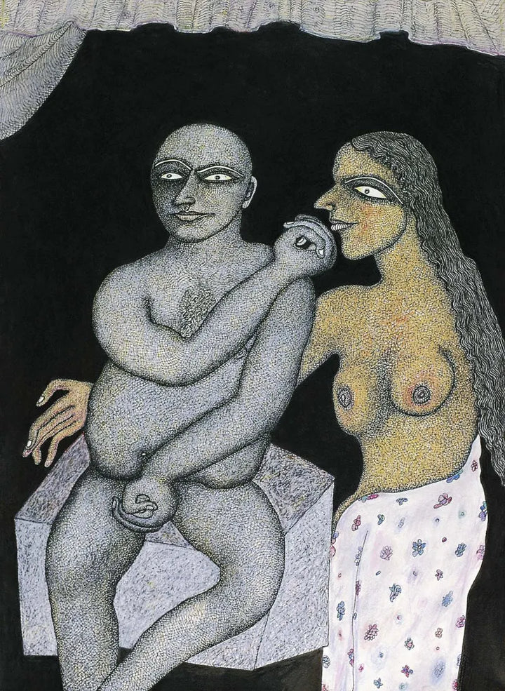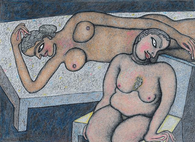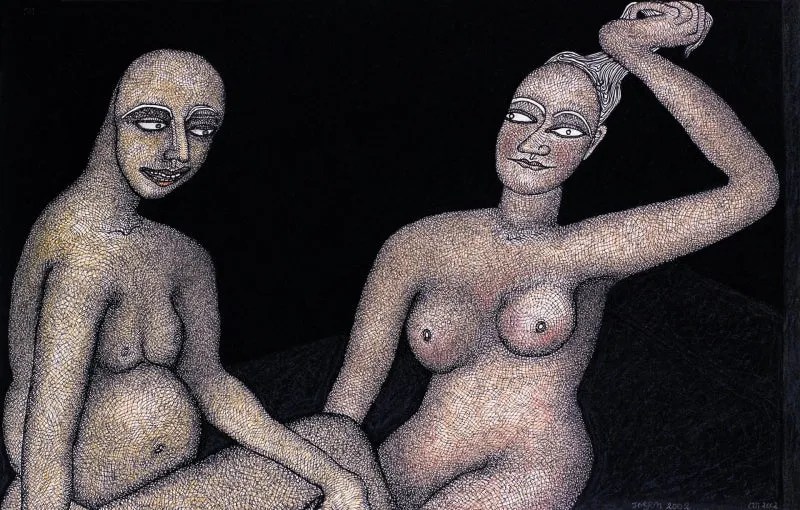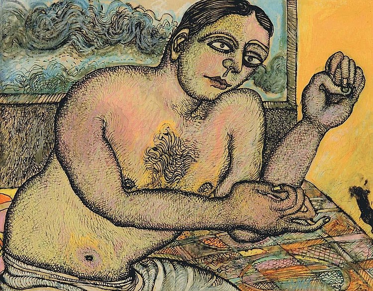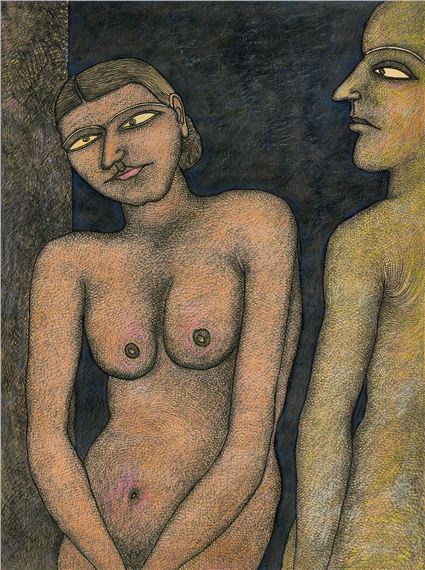 Jogen Chowdhury (Faridpur, Bengal, India, 1939) es uno de los grandes artistas contemporáneos de la India. Con una doble formación en Kolkata y en París, trabaja con tinta, acuarela y pasteles, aunque también emplea en algunos casos el óleo. Su personal estilo es glosado, de este modo en su página web: