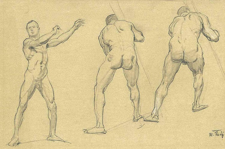 Maximilian Eduard Gallus Thedy (Munich, Alemania, 1858-1924) conocido como Max Thedy y, en ocasiones e incorrectamente como Marc Thedy, fue un pintor, dibujante grabador y diseñador alemán que se muestra como un típico representante de la escuela pictórica de Weimar y llegó a ser profesor de la Bauhaus. Sólo encuentro desnudos en sus dibujos, de los que les dejo una muestra: