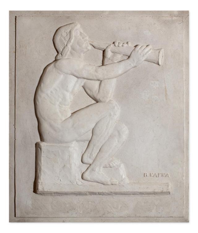 «Entre 1901 y 1904, Kafka trabajó en la Escuela de Artes Aplicadas de Praga como asistente de Stanislav Sucharda (1866-1916), donde también recibió una formación exhaustiva como medallista. Durante este período, modeló medallones que trascendían el clasicismo académico del siglo XIX al integrar motivos florales del Art Nouveau. Su concepto escultórico se desarrolló entre el simbolismo del Art Nouveau, omnipresente en Bohemia, y la influencia dominante de Auguste Rodin (1840-1917)».