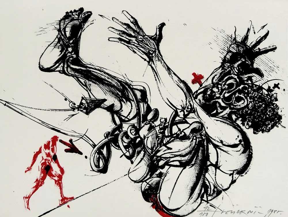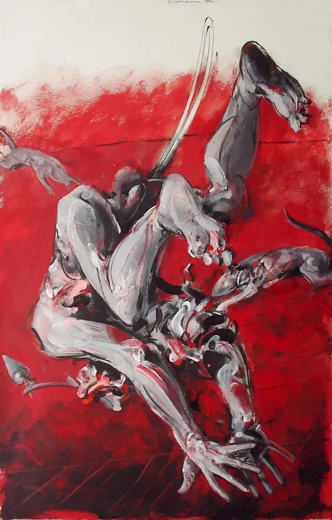 Vladimir Veličković (Belgrado, Vojvodina, Serbia, 1935-2019) fue el creador de una obra dramática, trágica y con cuerpos desgarrados, que podemos considerar deudora del expresionismo alemán de la entreguerra, sentido ahora a través de las experiencias del artista en la Segunda Guerra Mundial y durante la posterior ocupación de su país. Y, sin duda, la influencia artística de Francis Bacon.