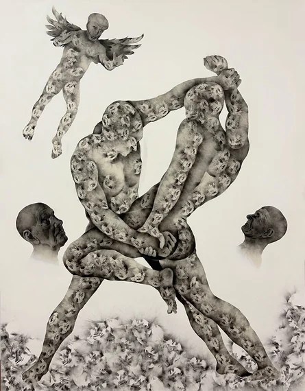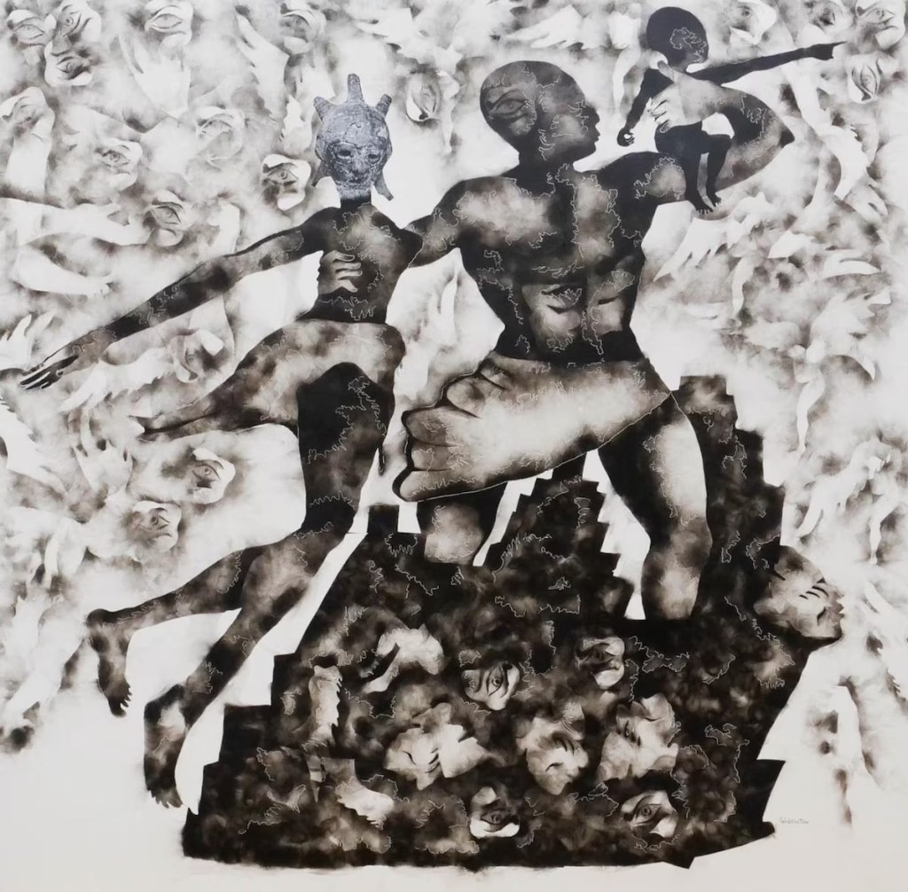 Géraldine Tobe (Kinshasa, República Democrática del Congo, 1992) es una artista muy original que vive y trabaja en su ciudad natal y que nos muestra una pintura espiritual y ambigua.