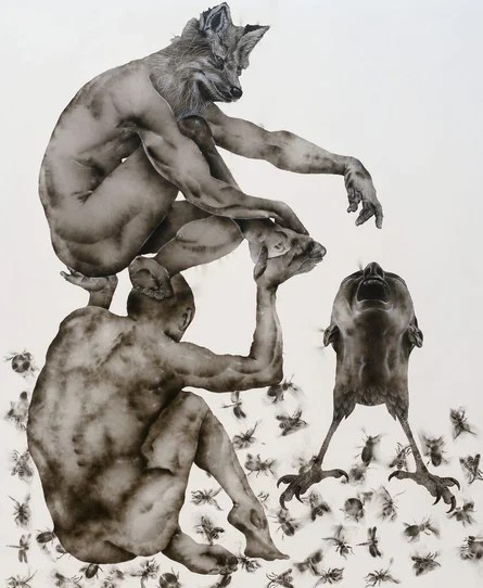 Acusada de brujería en su infancia y sometida a un violento exorcismo, su obra ahora cuestiona las creencias ancestrales y el lugar de la religión del colonizador. Imbuye su obra con su sufrimiento y el dolor de las mujeres y del pueblo congoleño. Sus pinturas abordan la etnografía, con un enfoque más específico en la iglesia en la historia colonial y la espiritualidad ancestral. En sus lienzos, máscaras africanas se mezclan con cuerpos desarticulados y danzantes. Ella dice que el uso del fuego y el humo le permite vincular los mundos inmaterial y físico».