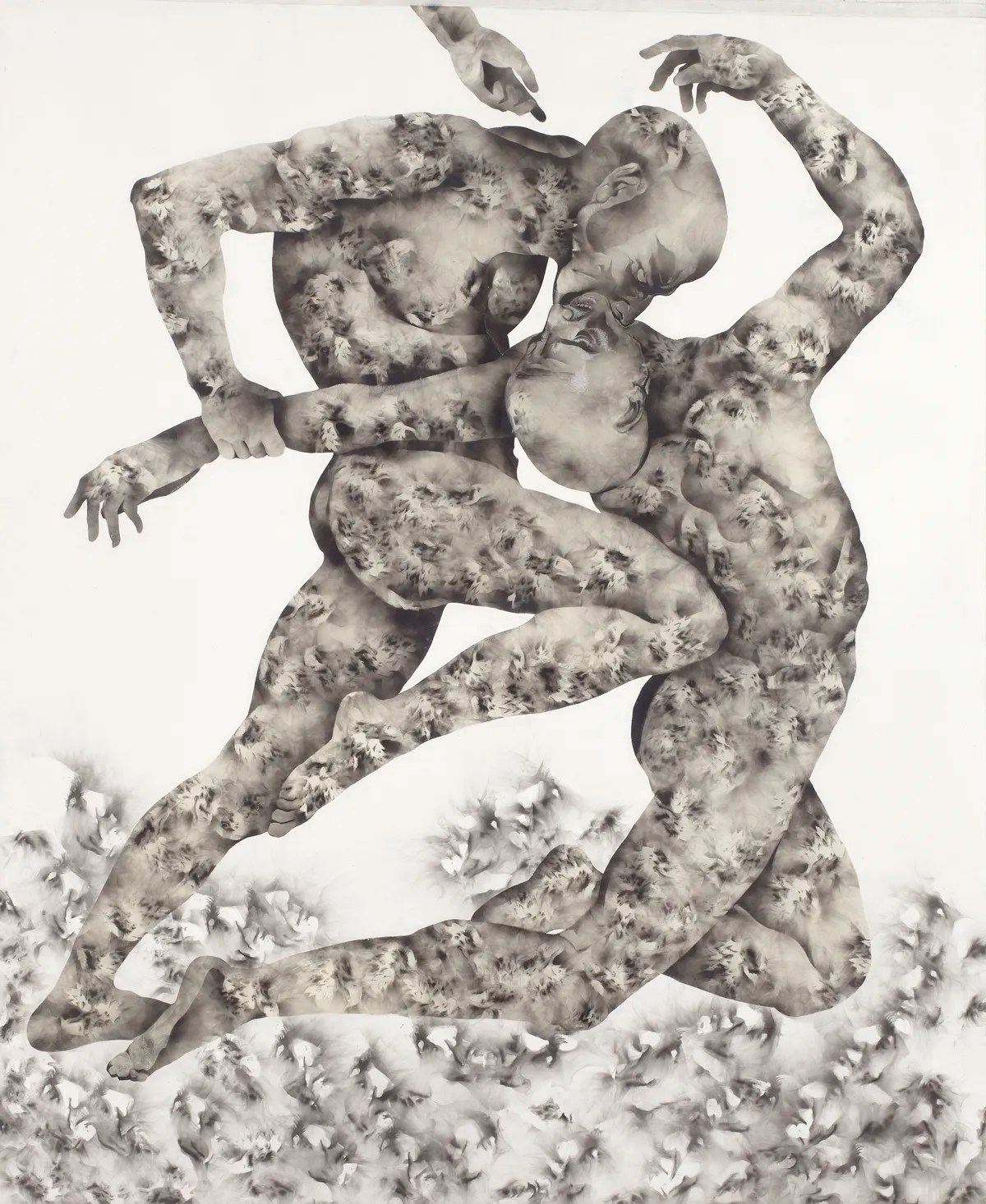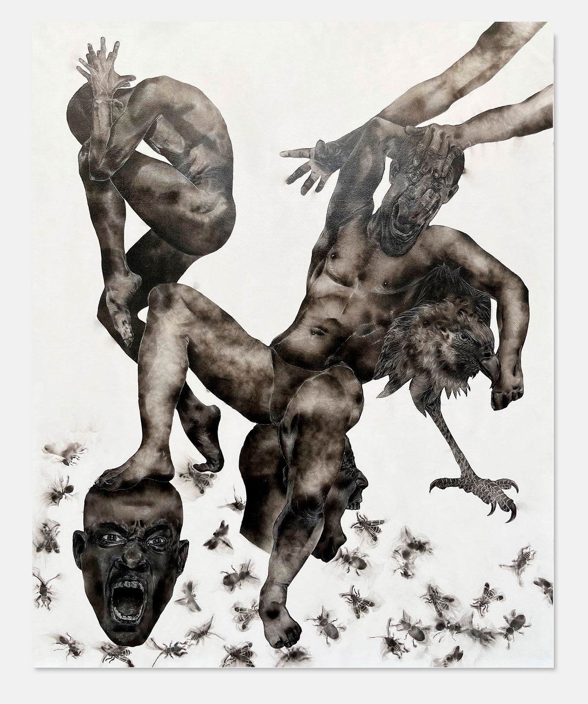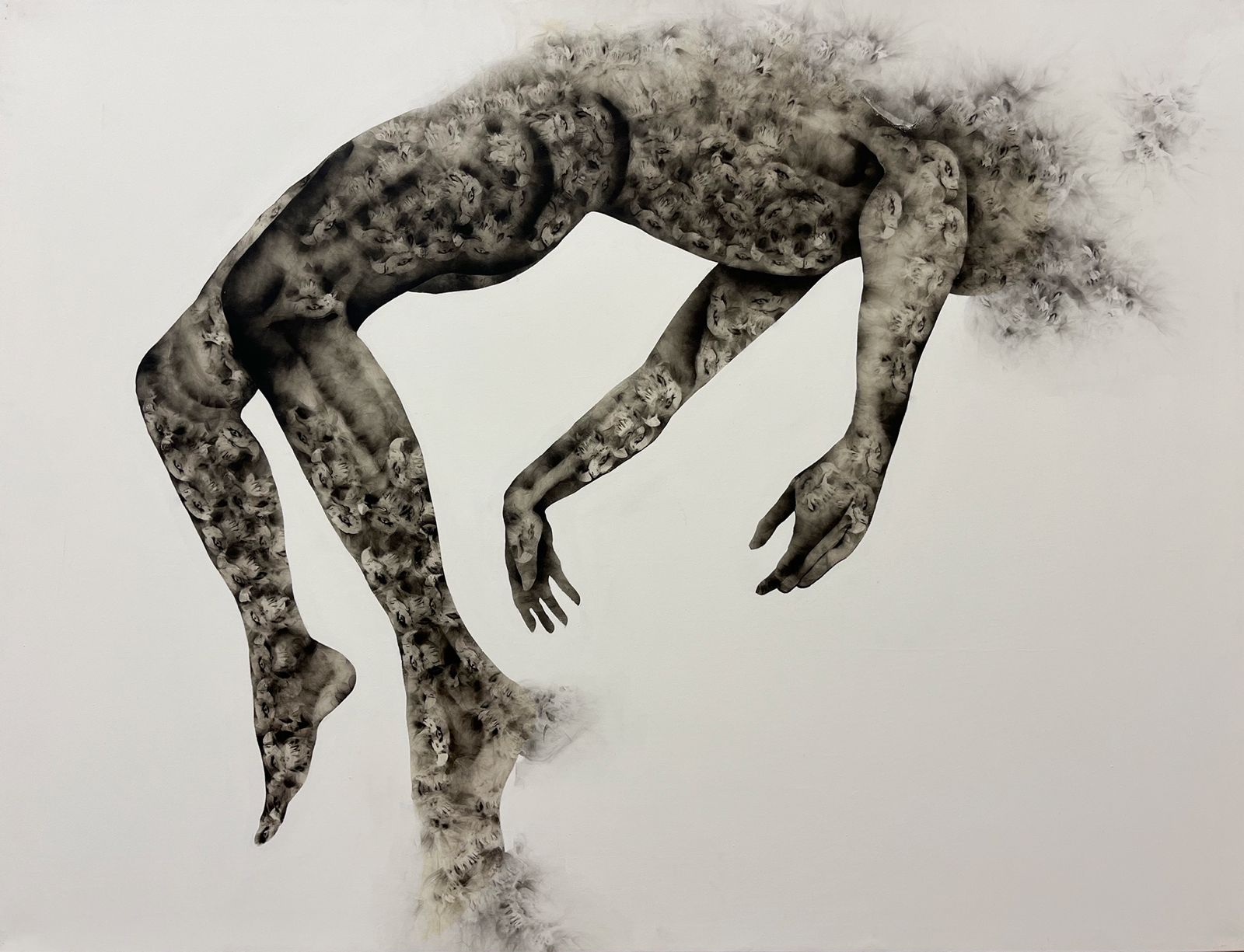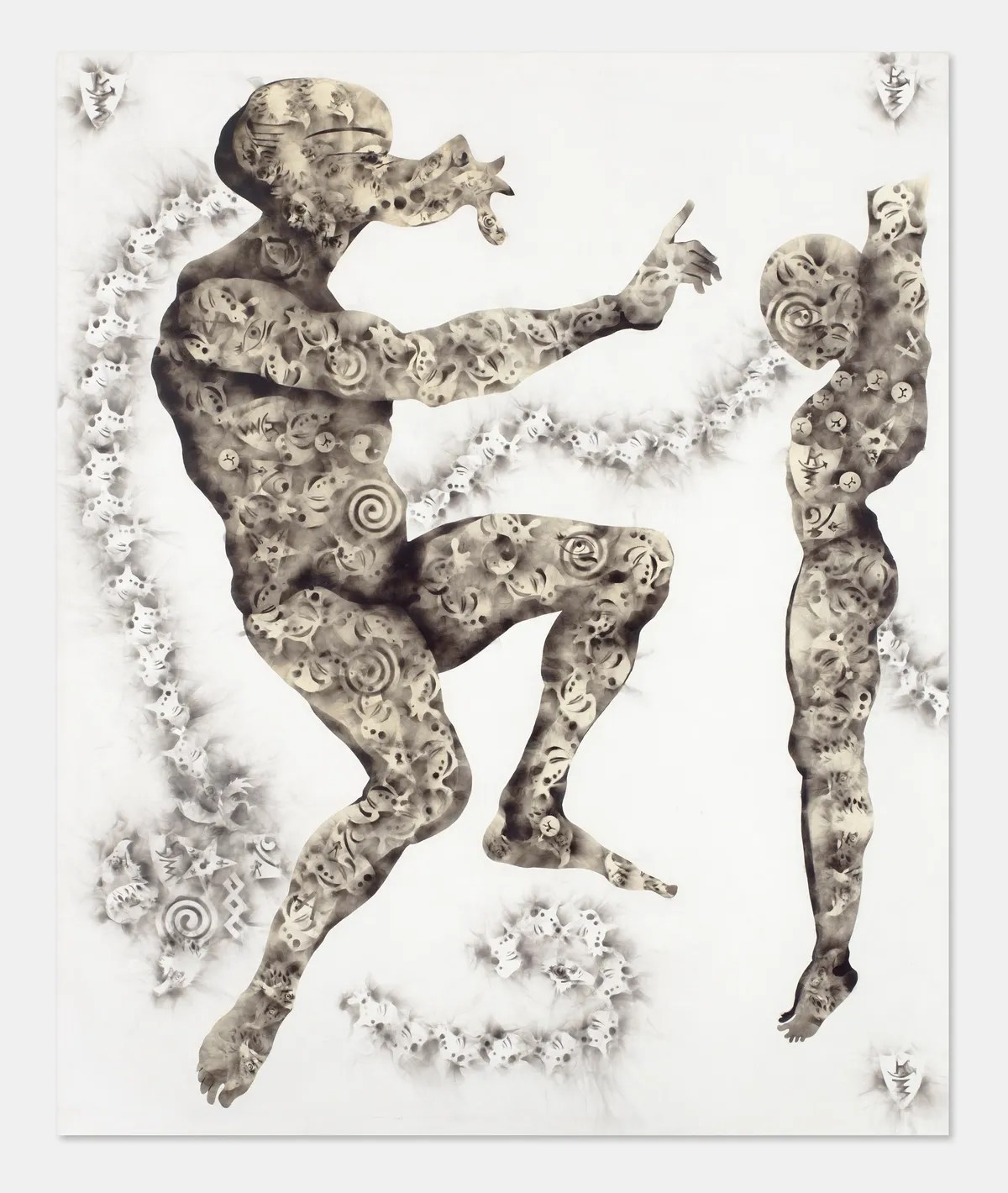 Acusada de brujería en su infancia y sometida a un violento exorcismo, su obra ahora cuestiona las creencias ancestrales y el lugar de la religión del colonizador. Imbuye su obra con su sufrimiento y el dolor de las mujeres y del pueblo congoleño. Sus pinturas abordan la etnografía, con un enfoque más específico en la iglesia en la historia colonial y la espiritualidad ancestral. En sus lienzos, máscaras africanas se mezclan con cuerpos desarticulados y danzantes. Ella dice que el uso del fuego y el humo le permite vincular los mundos inmaterial y físico».