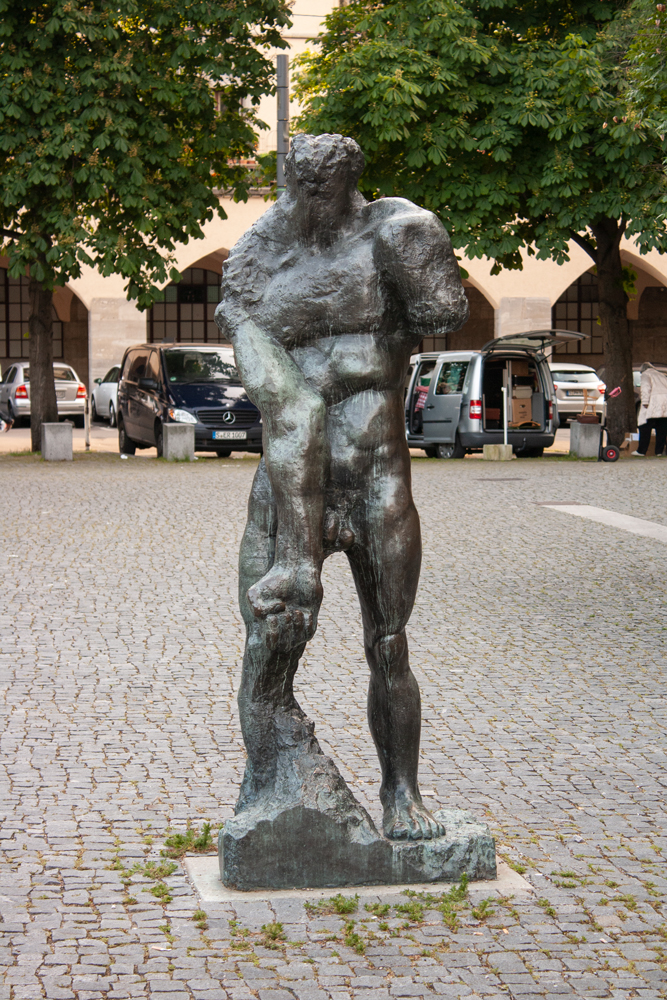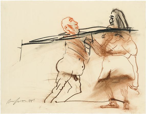 Alfred Hrdlicka (Viena Austria, 1928-2009) fue un pintor, dibujante, grabador y escultor, discípulo de Fritz Wotruba. Miembro del Partido Comunista y conocido militante contra el fascismo, la violencia y la guerra, nos muestra obras con un crudo estilo expresionista, formas distorsionadas para hacer prevalecer, ante todo, la emoción.